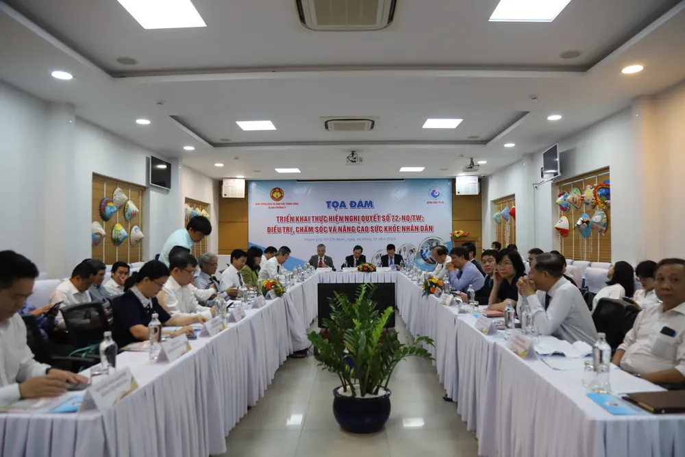 Tọa đàm "Triển khai thực hiện Nghị quyết 72: Điều trị, chăm sóc và nâng cao sức khỏe nhân dân". Ảnh: THẢO PHƯƠNG