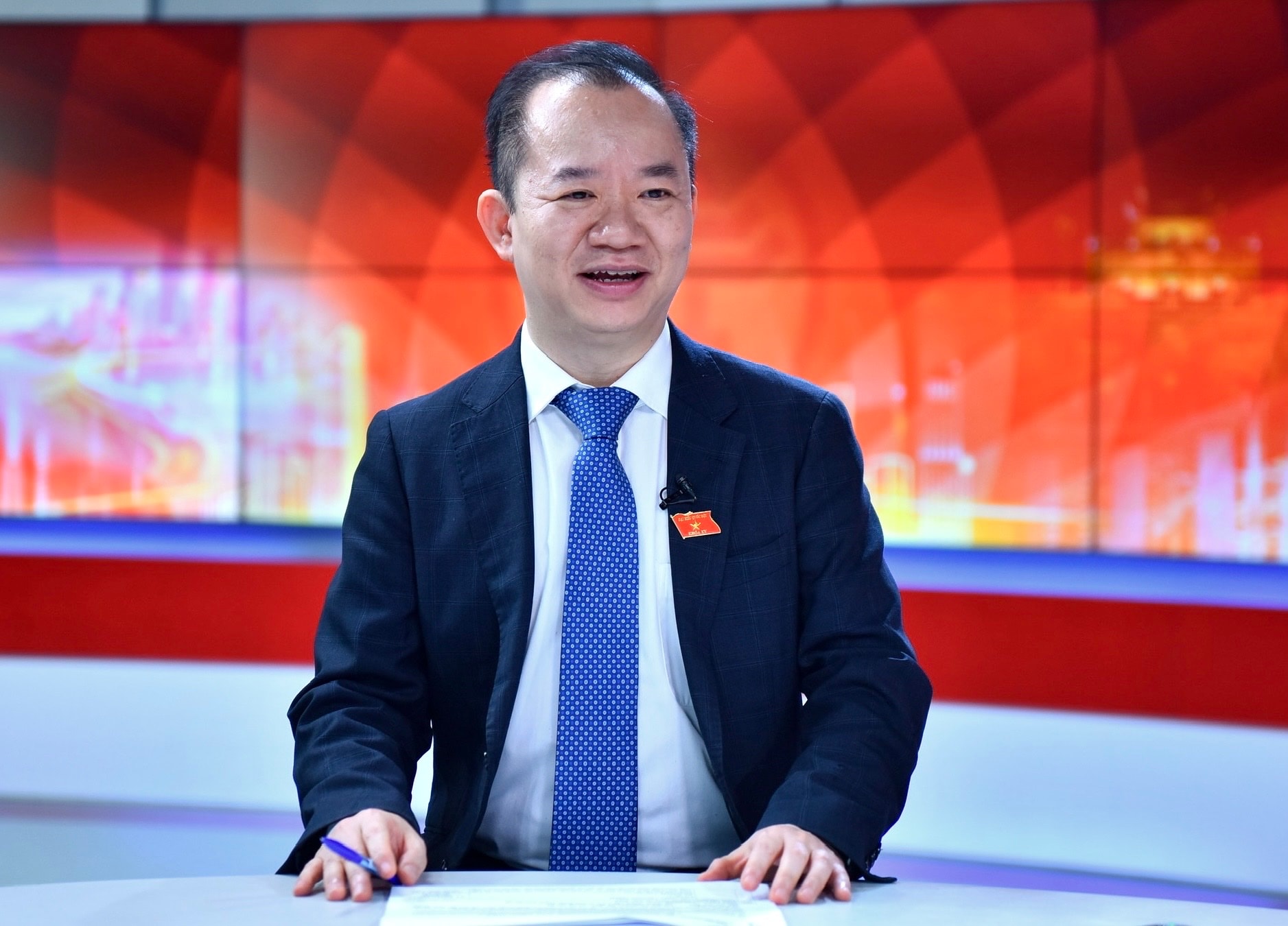 Các khách mời tham gia tọa đàm các Nghị quyết của Bộ Chính trị trong Chương trình thời sự đặc biệt “Hà Nội tiên phong, gương mẫu thực hiện các Nghị quyết chiến lược của Trung ương” do Cơ quan Báo và Phát thanh - Truyền hình Hà Nội tổ chức vào tối 27-2. Ảnh: Viết Thành - Phan Anh