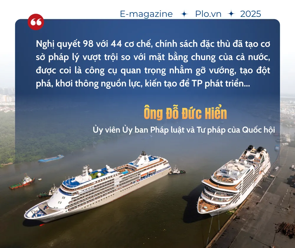 Theo đại biểu Quốc hội (QH) Đỗ Đức Hiển, Ủy viên Ủy ban Pháp luật và Tư pháp của QH, phiên bản “Nghị quyết 98 cộng” khi kết hợp với các cơ chế, chính sách đặc thù hiện hành dành cho TP.HCM sẽ tạo một hành lang pháp lý toàn diện hơn, đủ sức cạnh tranh, giúp TP.HCM phát triển bền vững, khẳng định vị trí đầu tàu, dẫn dắt vùng Đông Nam Bộ, Tây Nam Bộ và đóng góp mạnh mẽ hơn cho cả nước trong giai đoạn mới.
