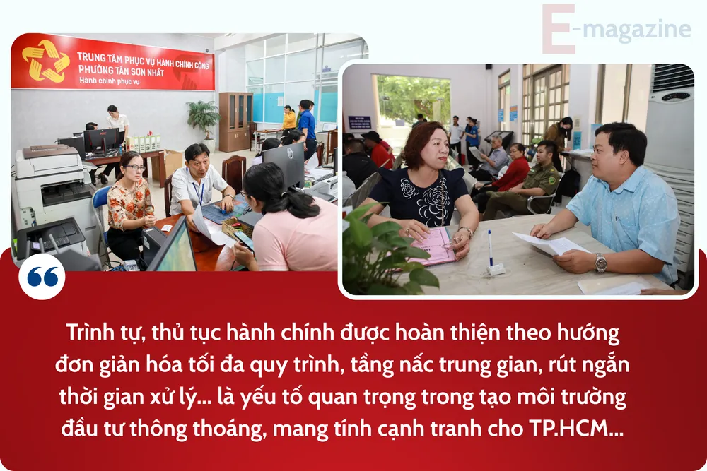 Thứ hai, hoàn thiện trình tự, thủ tục hành chính theo hướng đơn giản hóa tối đa quy trình hành chính, giảm tầng nấc trung gian, rút ngắn thời gian xử lý, bảo đảm công khai, minh bạch gắn với tăng cường kiểm soát và trách nhiệm giải trình trong thực hiện các công việc, nhất là thủ tục đầu tư các dự án tại khu vực trọng điểm, khu công nghiệp, khu chế xuất, khu công nghệ cao, khu kinh tế và nhiều cơ chế hành chính vượt trội khác đối với khu thương mại tự do TP.HCM.