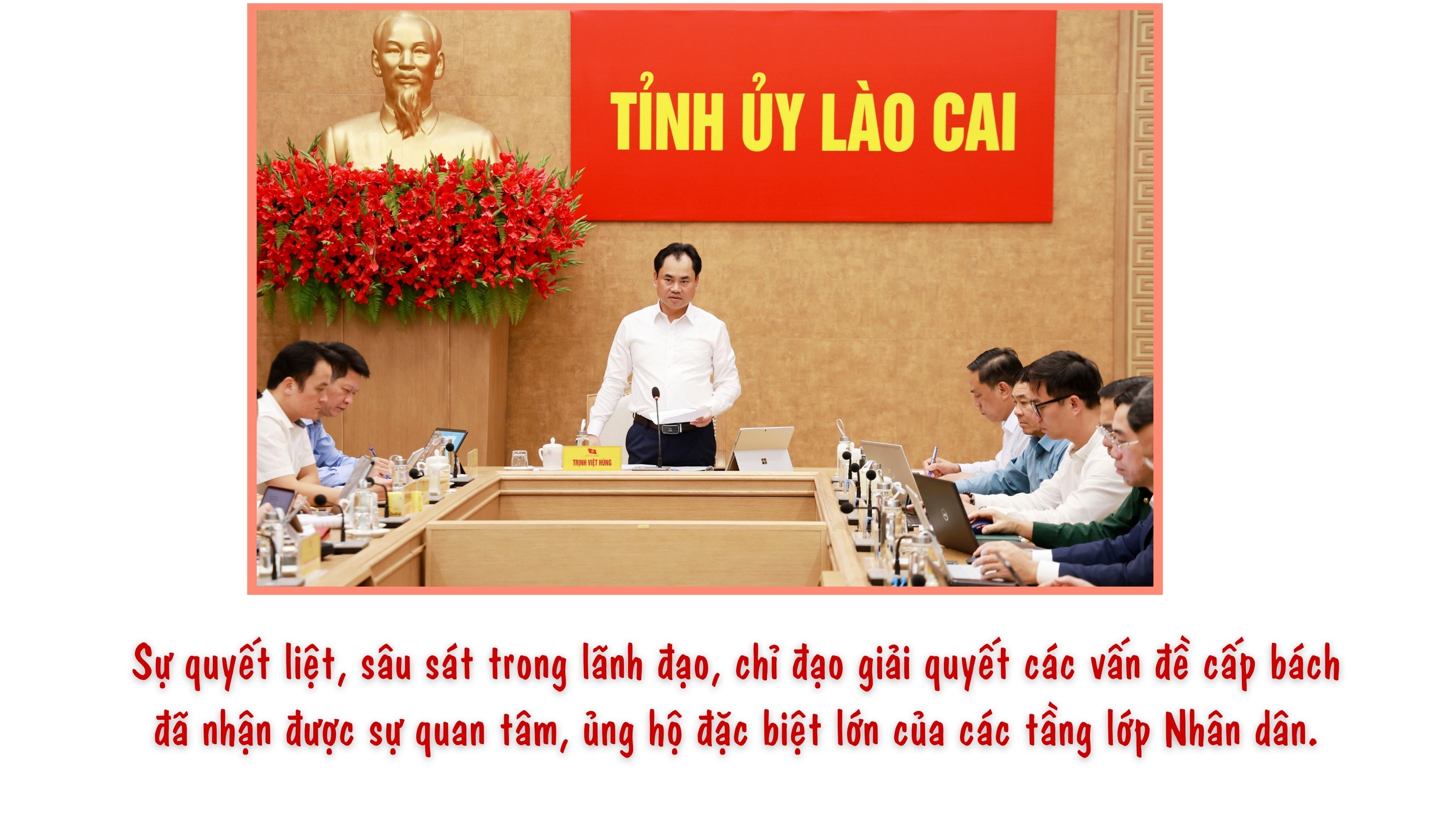 Quyết tâm hành động của Ban Thường vụ Tỉnh ủy được thể hiện rõ qua việc chỉ đạo giải quyết tình trạng ngập, úng cục bộ ven sông Hồng khu vực trung tâm tỉnh trong mùa mưa lũ. Ngay từ những ngày đầu của nhiệm kỳ (tháng 10/2025), Ban Thường vụ Tỉnh ủy đã xác định đây là nhiệm vụ cấp bách, ảnh hưởng trực tiếp đến đời sống của nhiều hộ dân. Ngay trong cuộc họp đầu tiên của Ban Thường vụ Tỉnh ủy nhiệm kỳ mới, nội dung này đã được đưa ra bàn thảo kỹ lưỡng trước khi chỉ đạo thực hiện các bước tiếp theo.