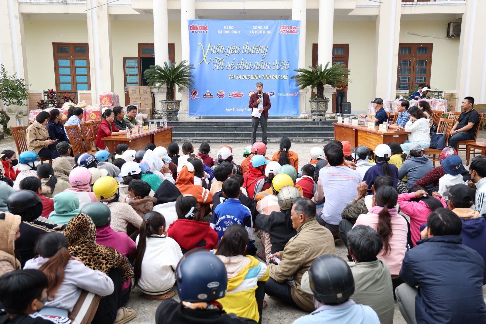 Chương trình "Xuân yêu thương - Tết sẻ chia năm 2026" của Báo Tin tức và Dân tộc cùng Báo Thể thao và Văn hóa đã trao quà Tết cho người dân và học bổng cho học sinh vùng lũ xã Đức Bình, Đắk Lắk.