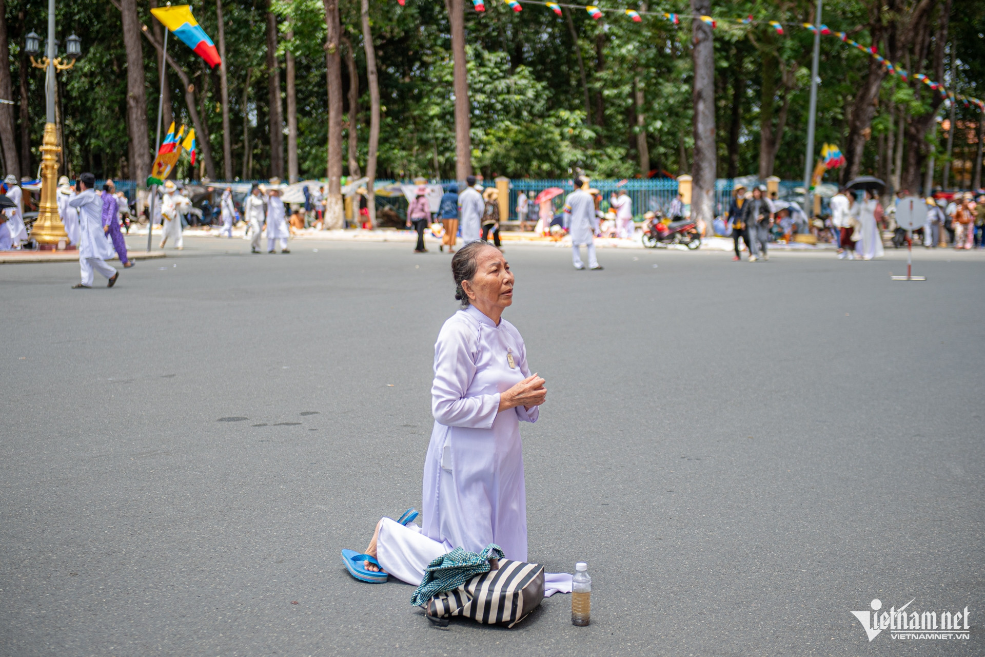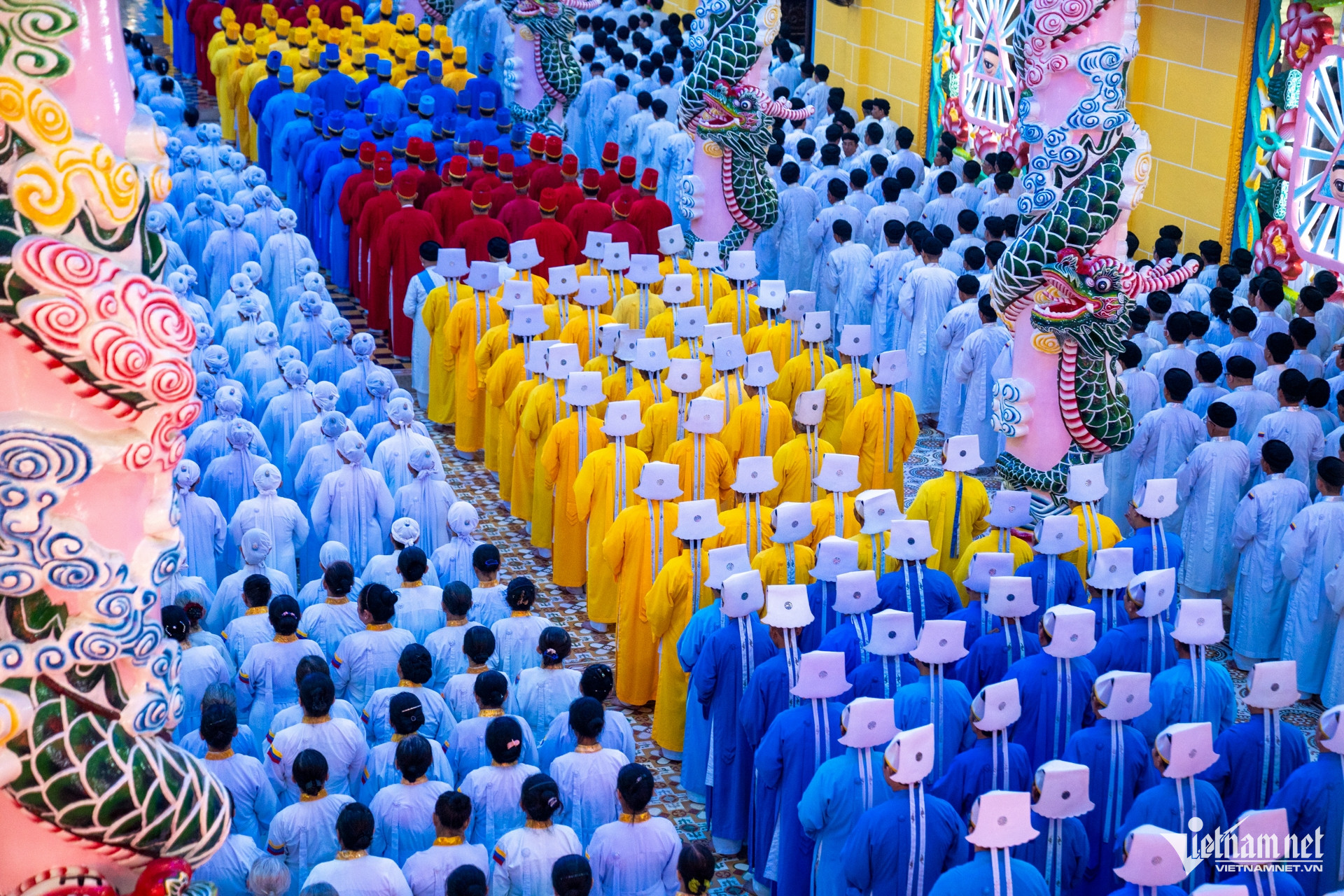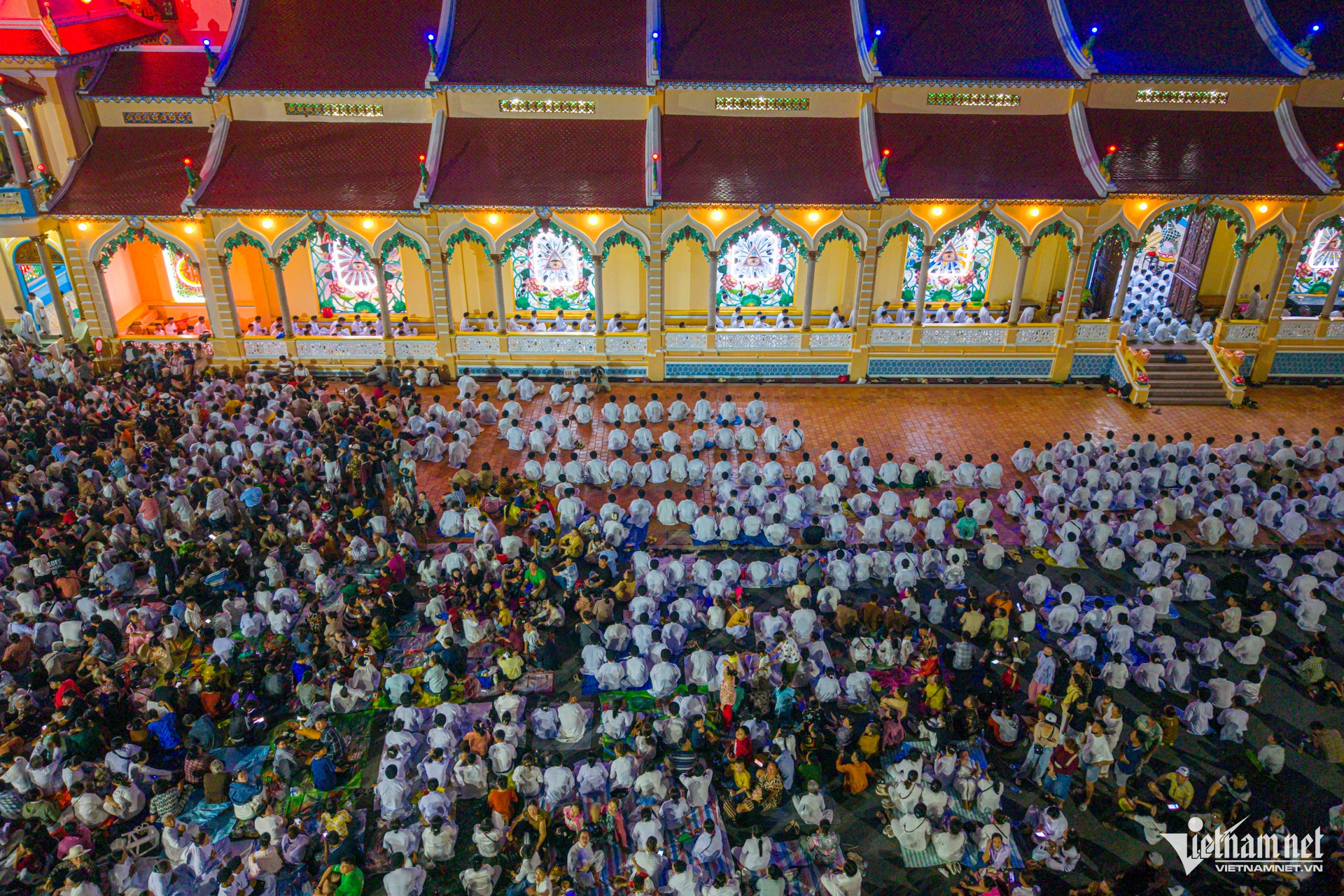 Trong không gian trang nghiêm, hàng nghìn tín đồ đạo Cao Đài và du khách lặng lẽ chiêm bái.