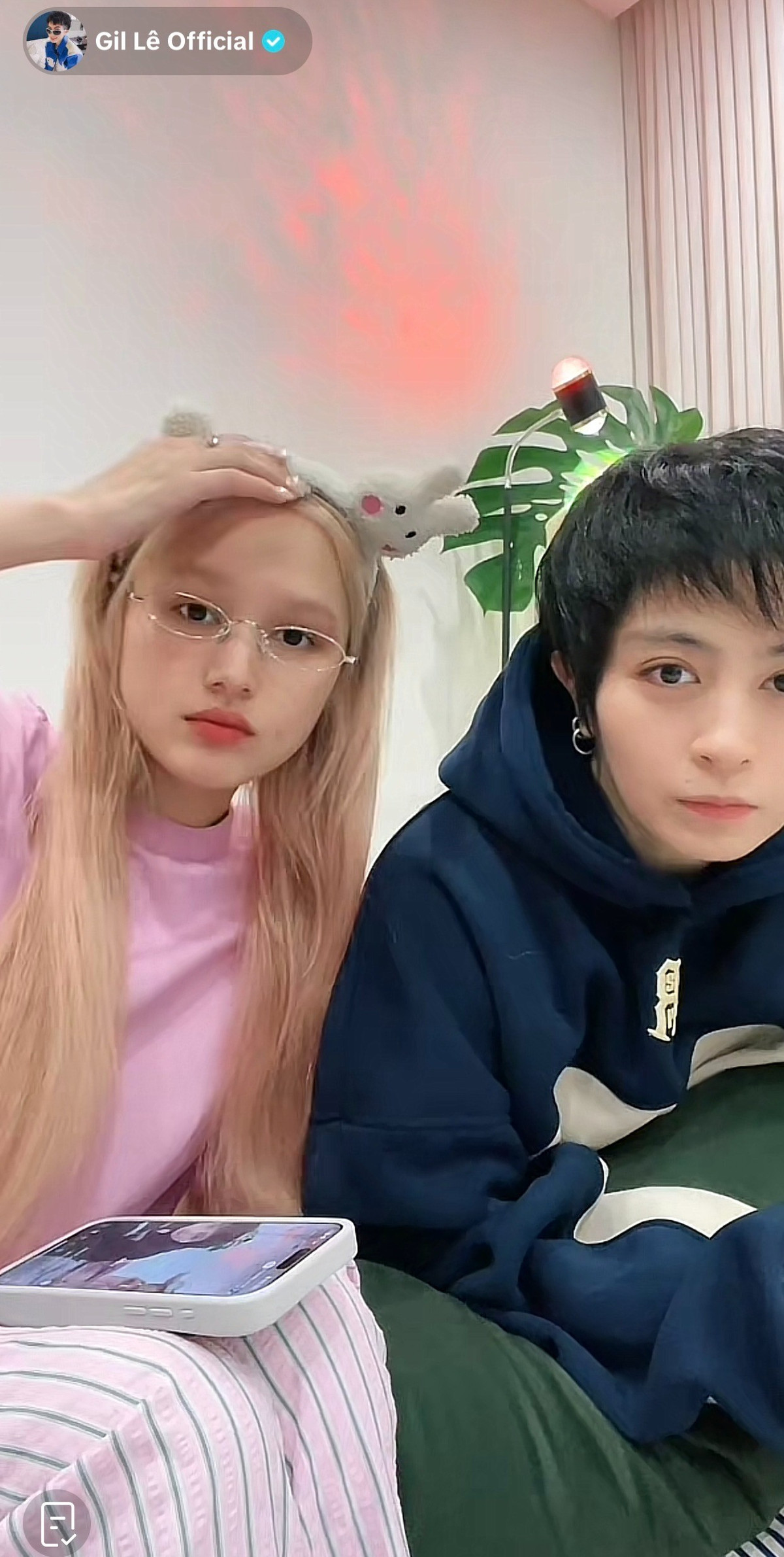 Tối 22/10, Gil Lê đã đăng tải hình ảnh đi chơi cùng hội bạn thân thiết trên trang cá nhân. Trong bức hình, Xoài Non ngồi núp phía sau lưng của người yêu, lấy tay tạo dáng như để che chắn không để lộ rõ toàn bộ gương mặt của mình. Một số netizen còn cho rằng hot girl sinh năm 2002 đang có hành động né camera sau khi có sự thay đổi về ngoại hình.