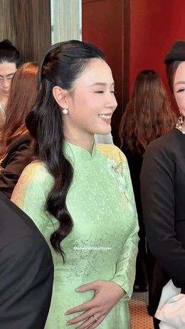 Nàng dâu hào môn gây chú ý khi tay liên tục xoa bụng.