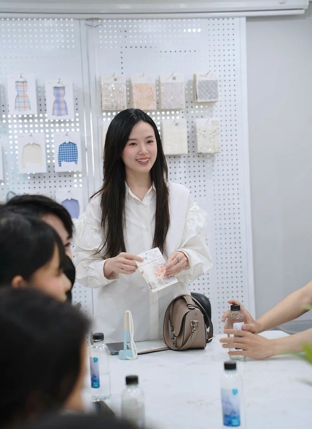Midu diện sơ mi rộng trong một số lần đi dạy học. Ảnh: FBNV.