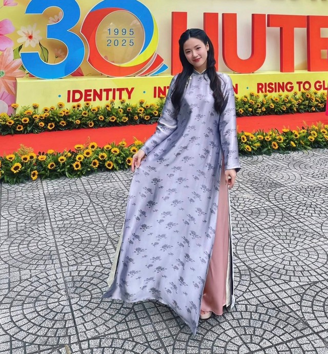 Midu mặc áo dài suông trong dịp 20/11. Ảnh: FBNV.