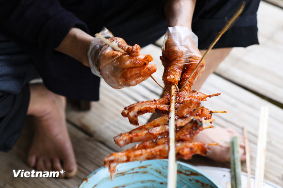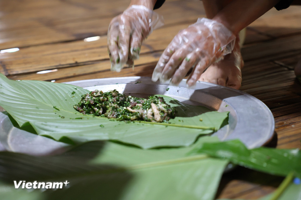 Mùi cá nướng quyện với hương gỗ quế, lá mắc mật tạo nên vị đậm đà, khó quên. Món ăn phản ánh tri thức dân gian và nghệ thuật ẩm thực truyền thống của cư dân miền núi. (Ảnh: PV/Vietnam+)