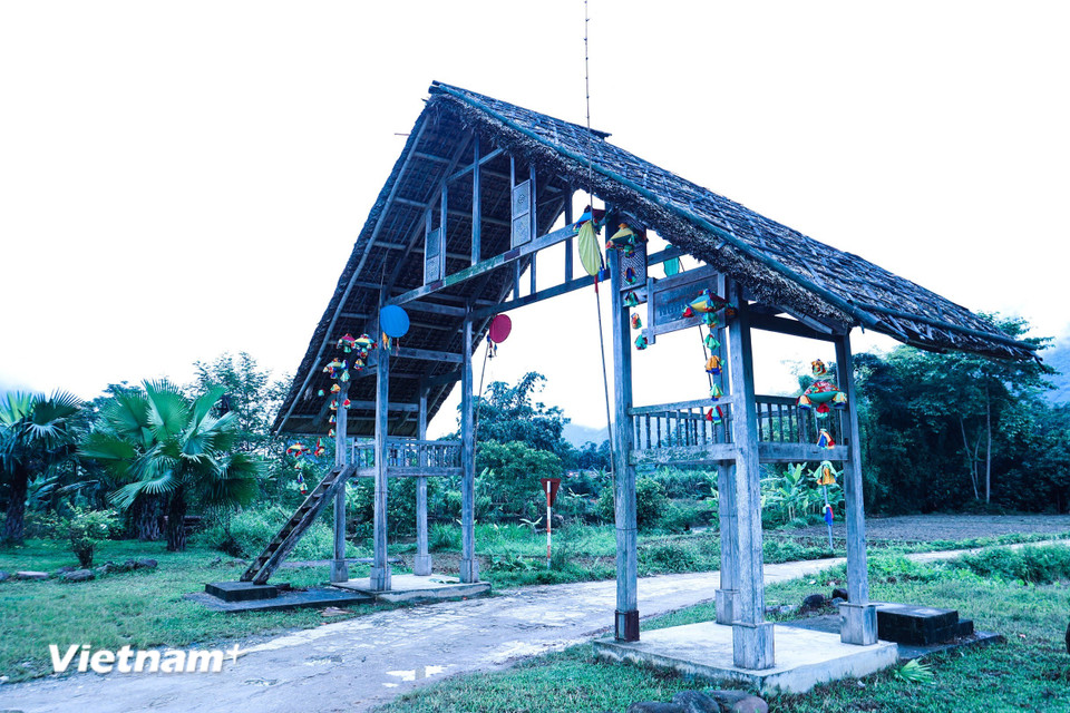 Cổng chào mang biểu tượng hoa văn truyền thống, như lời chào của người Tày gửi đến du khách, mở ra không gian văn hóa đậm đà bản sắc miền sơn cước. (Ảnh: PV/Vietnam+)