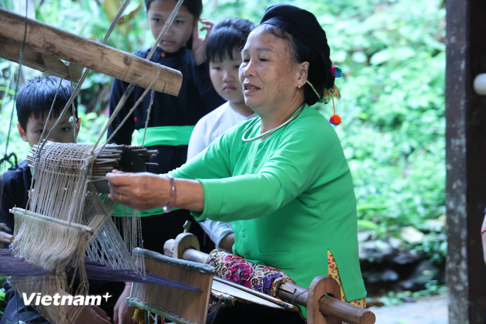 Ngoài ẩm thực, Nghĩa Đô còn bảo tồn nhiều nghề truyền thống. Nghệ nhân dân gian Nguyễn Thị San là người kiên trì truyền lại kỹ năng dệt thổ cẩm – nghề gắn bó với đời sống thường nhật của người Tày. (Ảnh: PV/Vietnam+)