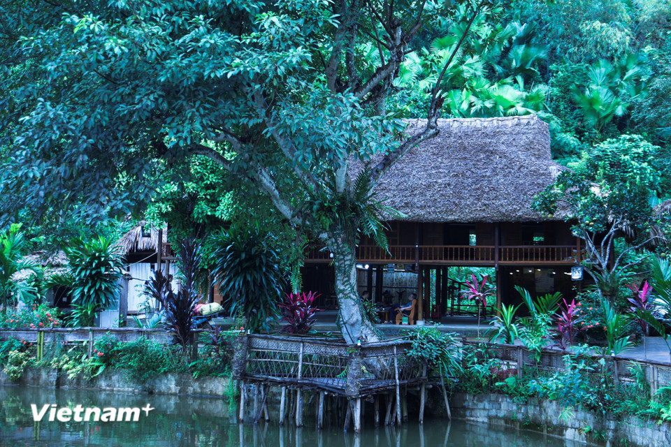 Trong làn sương bảng lảng, mái nhà sàn cổ soi mình bên dòng nước – bức tranh yên bình ấy là nét đặc trưng của vùng đất người Tày nơi thượng nguồn sông Hồng. (Ảnh: PV/Vietnam+)