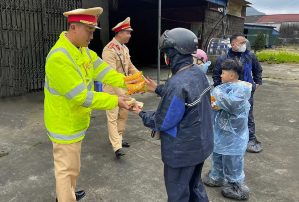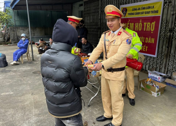Giữa hành trình dài, giá rét và sương mù vùng cao, hình ảnh những cán bộ, chiến sĩ CSGT Công an tỉnh Sơn La lặng lẽ đứng bên đường trao tận tay chai nước, hộp sữa, chiếc bánh, mũ bảo hiểm… đã trở thành điểm dừng chân ấm áp đối với biết bao người con xa quê.