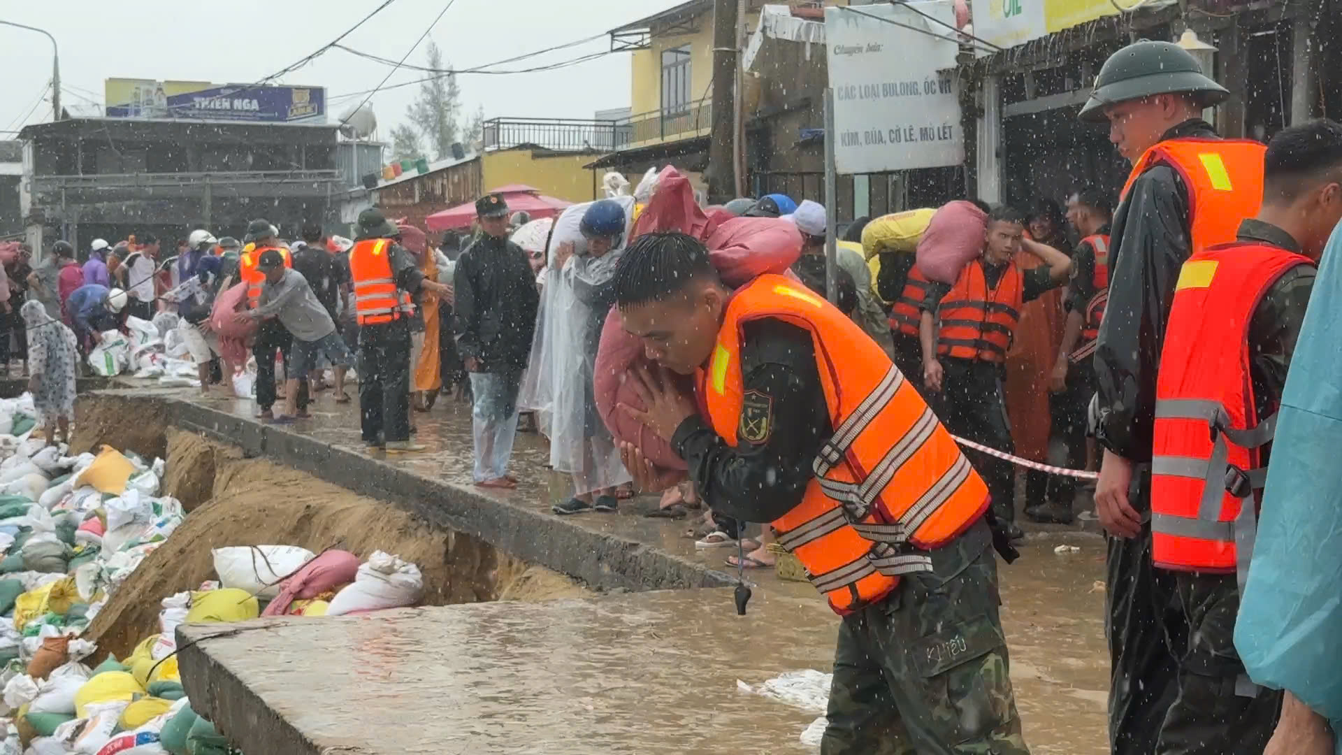 Cán bộ, chiến sĩ Quân khu 5 và gần 1.000 người dân xã Duy Nghĩa (TP Đà Nẵng) nỗ lực gia cố 1km sạt lở bờ kè An Lương