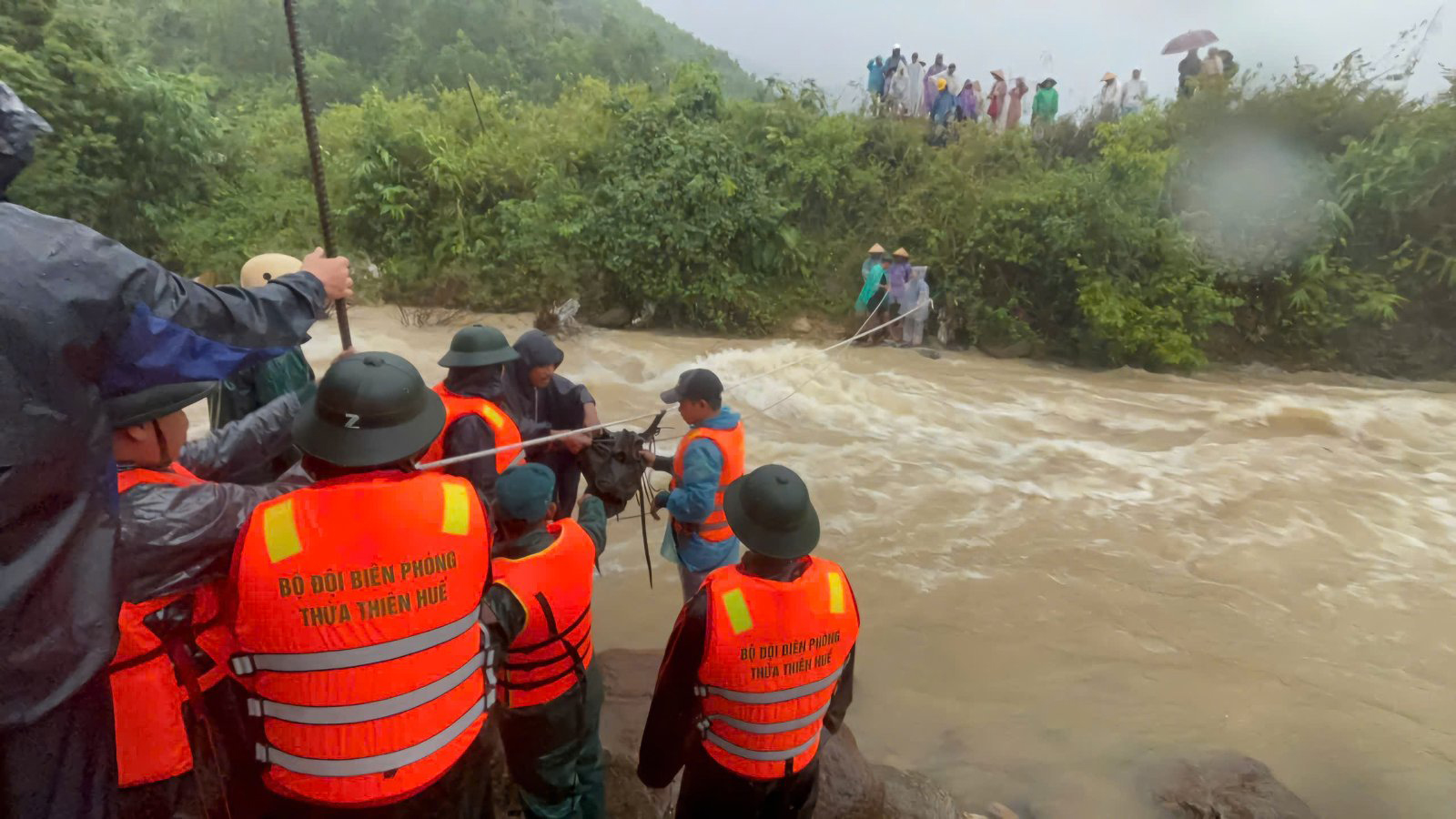 Đồn Biên phòng cửa khẩu Hồng Vân (Bộ đội Biên phòng TP Huế) sử dụng dây thừng và ròng rọc tiếp tế đồ ăn cho 107 người dân Ta Lo A Hố (xã A Lưới 1, TP Huế) bị cô lập