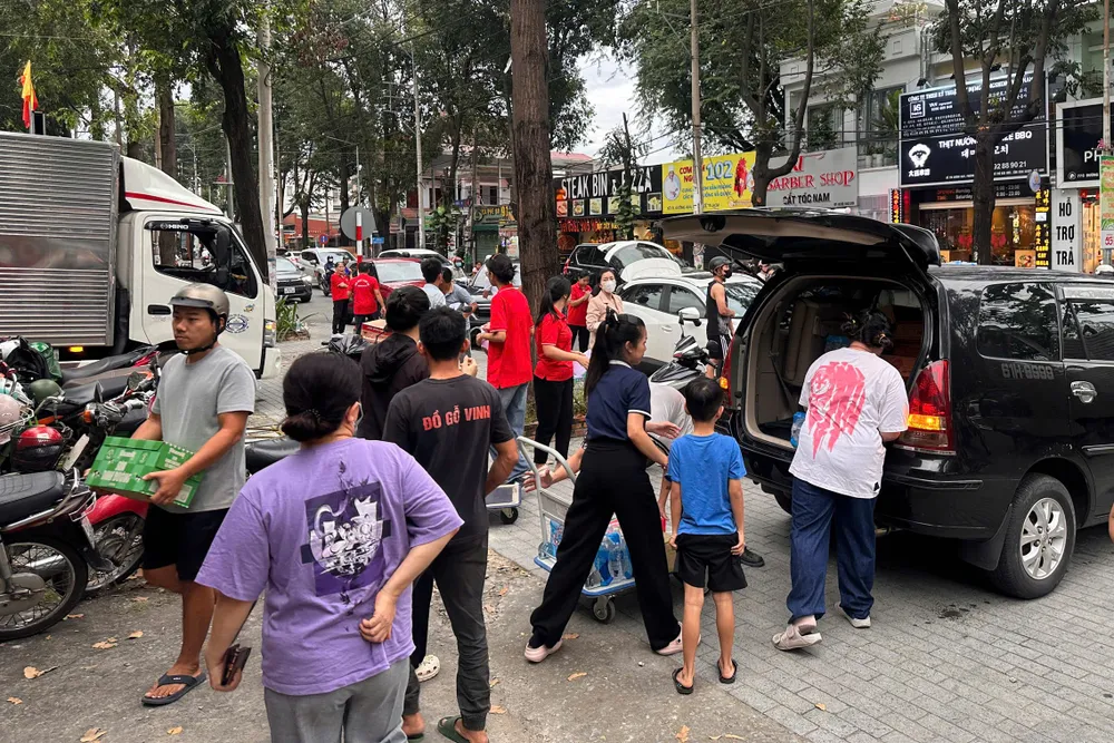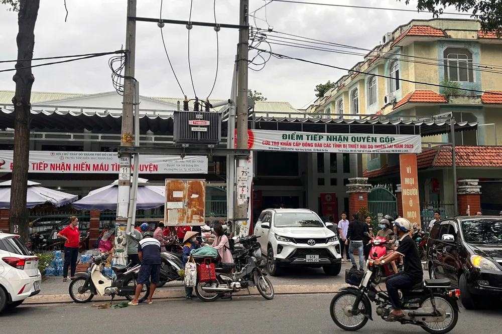 Đến chiều tối, lượng người đổ về càng đông hơn. Nhiều thời điểm, khu vực sân trụ sở Hội Chữ thập đỏ gần như ken đặc người và hàng hóa, buộc lực lượng chức năng phải hỗ trợ điều tiết để tránh ùn ứ.