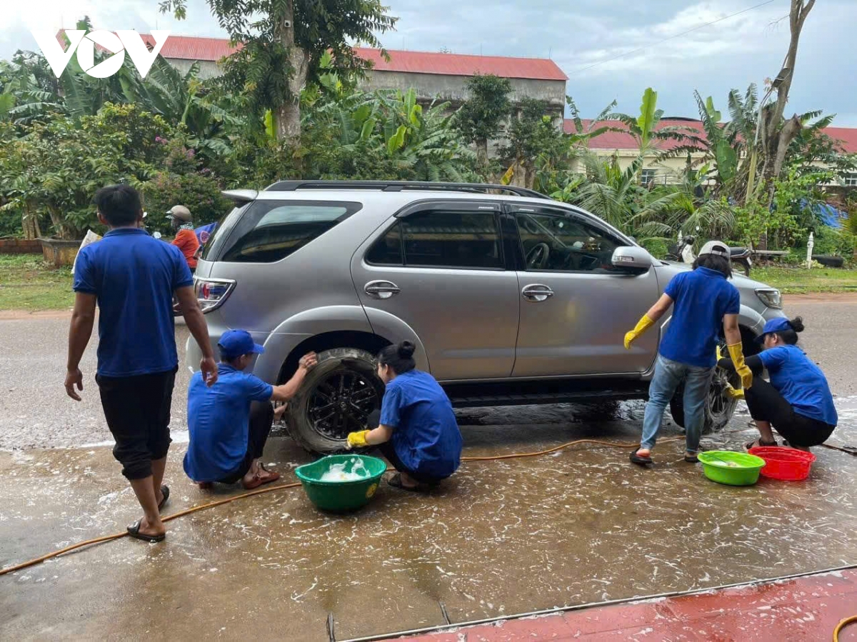 Đoàn thanh niên xã Ia Hrung triển khai rửa xe gây quỹ ủng hộ vùng lũ