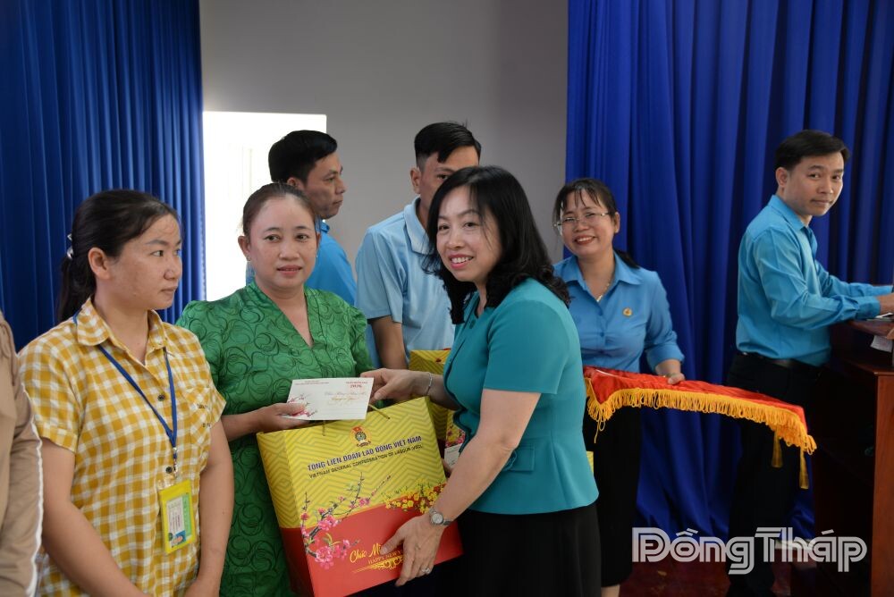 Đồng chí Thái Thu Xương, Phó Chủ tịch Thường trực Tổng Liên đoàn Lao động Việt Nam trao quà tết cho đoàn viên, công nhân lao động.