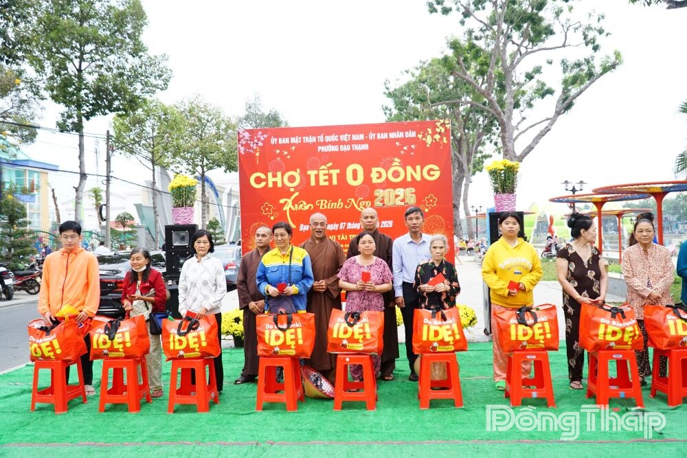 UBND phường Đạo Thạnh vừa phối hợp Ủy ban MTTQ Việt Nam phường tổ chức Chương trình “Chợ tết 0 đồng” Xuân Bính Ngọ 2026 cho hộ nghèo trên địa bàn phường. Tại phiên chợ, Ban Tổ chức phát 300 phiếu mua hàng 0 đồng cho 300 hộ nghèo, hộ cận nghèo, hộ có người thân nhiễm chất độc da cam/dioxin, người tàn tật, người già neo đơn, hộ có hoàn cảnh khó khăn trên địa bàn; mỗi phiếu mua hàng trị giá 700 ngàn đồng.