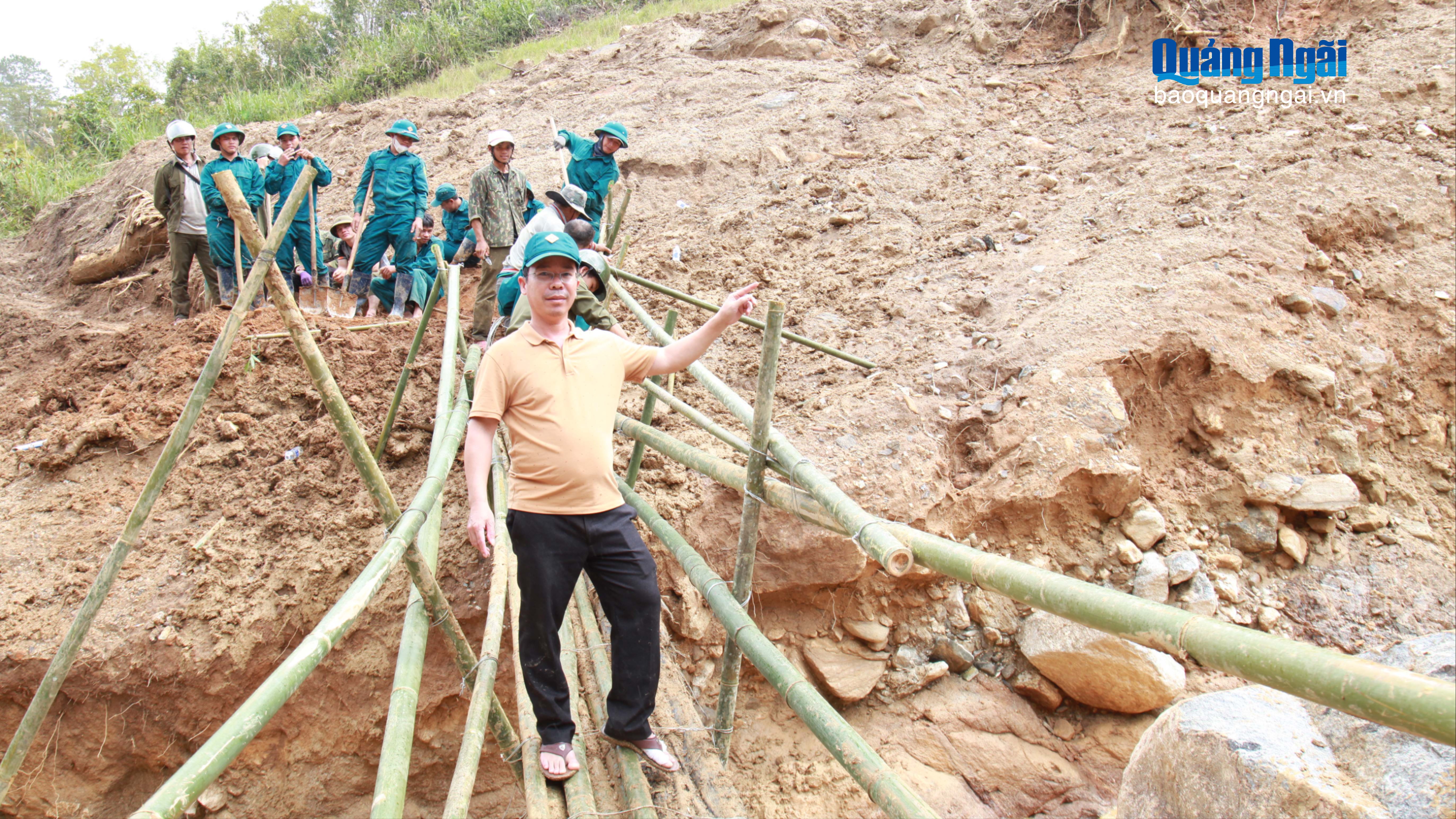 Sau tiếng nổ lớn đêm 28/10, quả đồi ở Ngọc Nang sạt khiến đất đá tràn xuống, làm chia cắt 5 thôn phía bắc, cô lập hơn 400 hộ dân, với gần 1.700 nhân khẩu. Chúng tôi đang huy động lực lượng khắc phục.