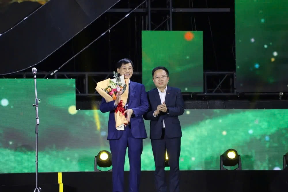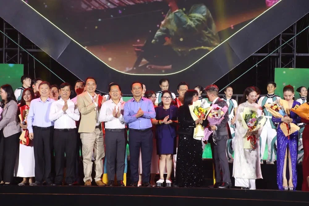 Lãnh đạo tặng hoa cho các nghệ sĩ tham gia đêm nhạc Nghĩa tình phương Nam 2025