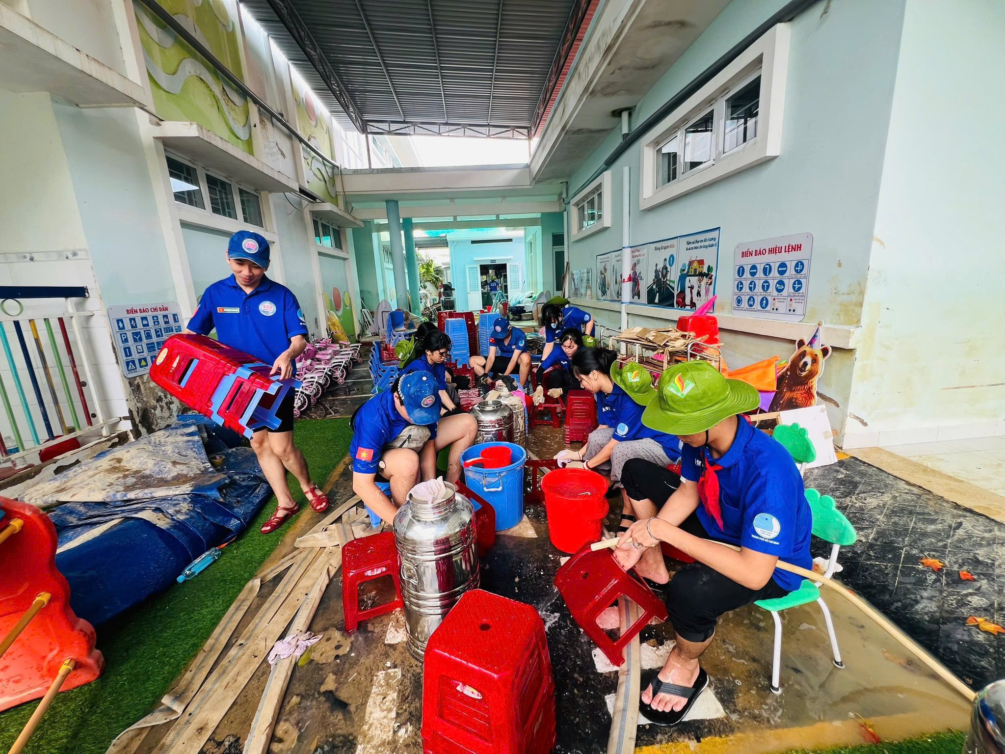 Đội hình tuổi trẻ TPHCM khẩn trương vệ sinh, dọn dẹp tại các điểm trường bị ảnh hưởng sau mưa lũ