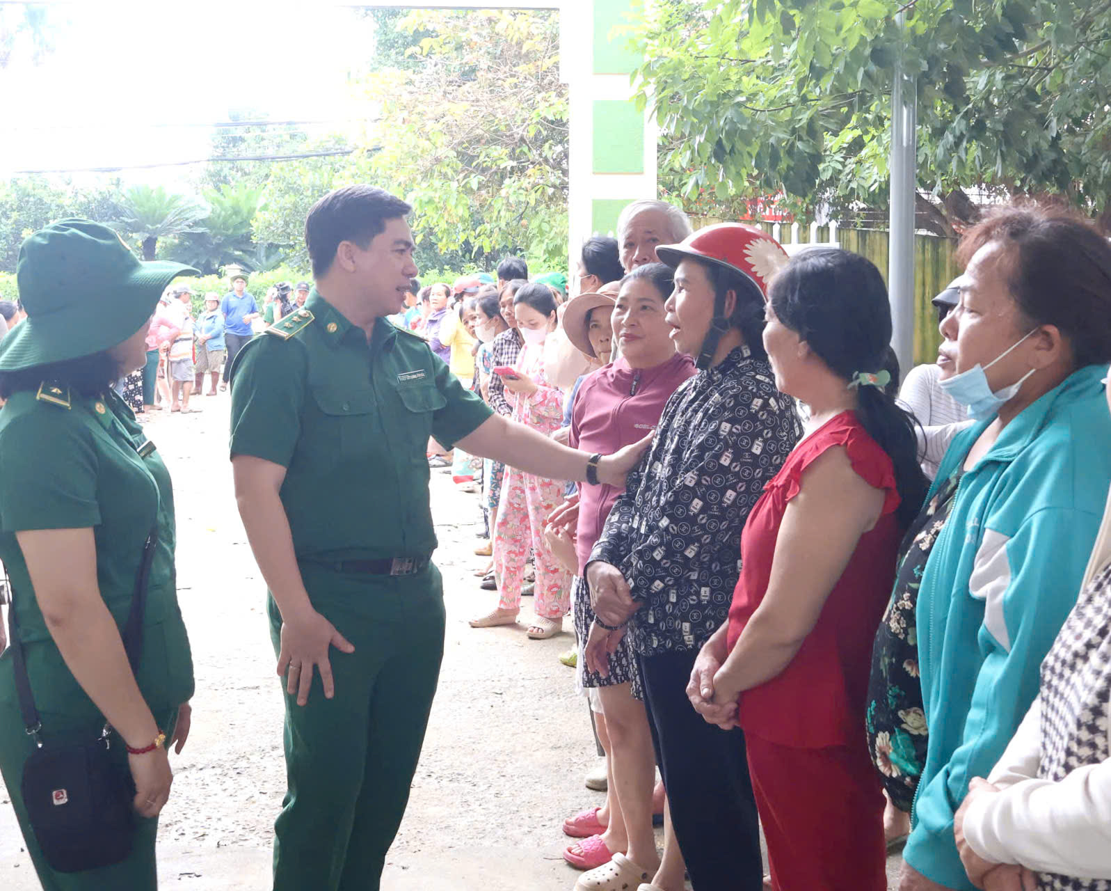Đồng chí Triệu Đỗ Hồng Phước, Bí thư Đảng ủy, Chỉ huy trưởng Lực lượng TNXP TPHCM thăm hỏi, động viên người dân xã Tây Nha Trang