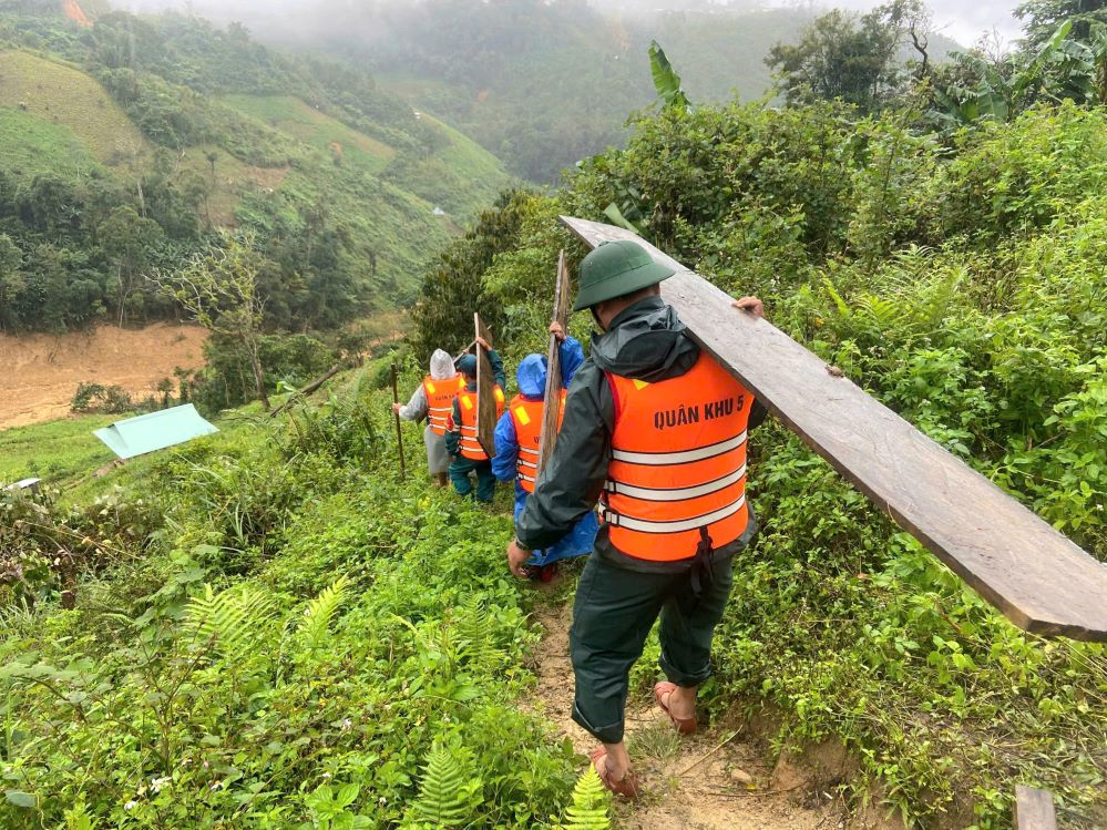Cán bộ, chiến sĩ LLVT Quân khu 5 tìm kiếm nạn nhân mất tích.