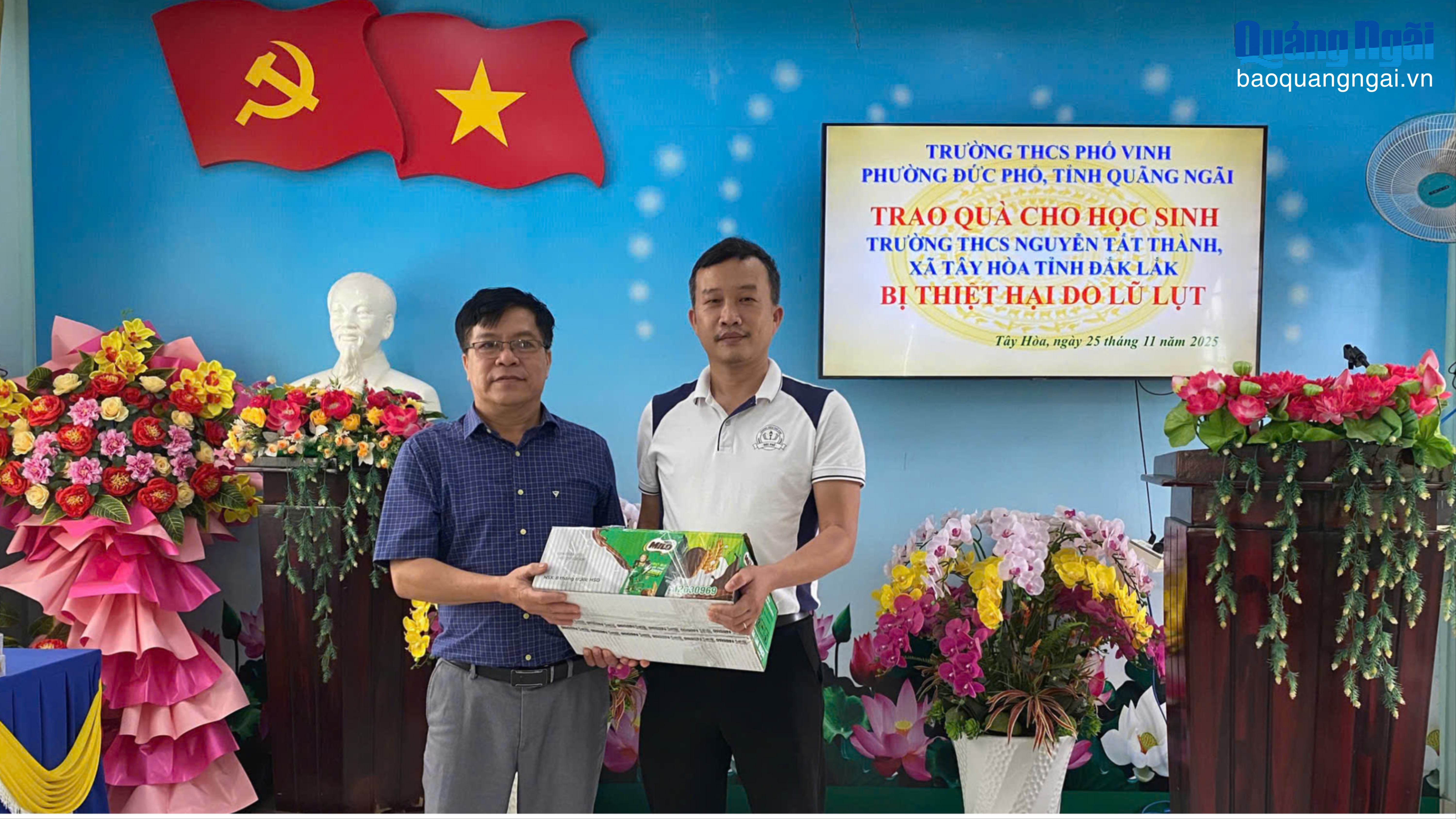 Thông qua Ủy ban MTTQ Việt Nam xã Tây Hòa (Đắk Lắk), Trường THCS Phổ Vinh (phường Đức Phổ, Quảng Ngãi) đã kết nối với Trường THCS Nguyễn Tất Thành (xã Tây Hòa, Đắk Lắk) để nắm bắt tình hình.