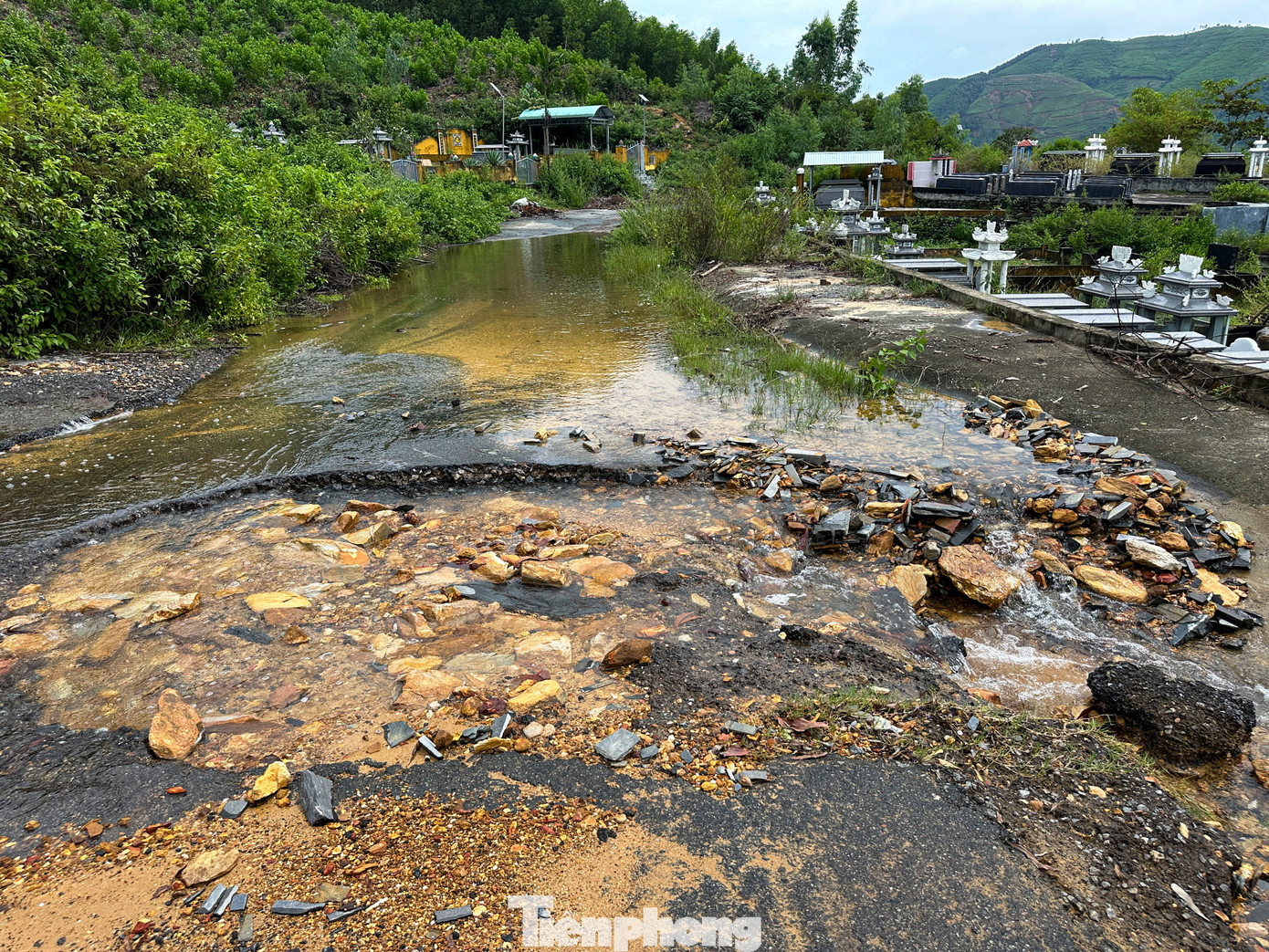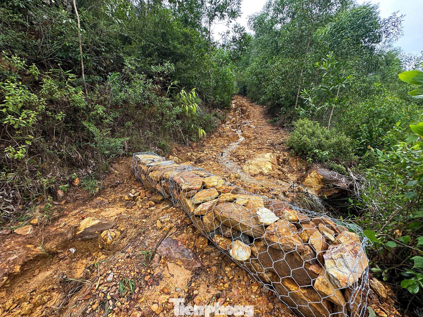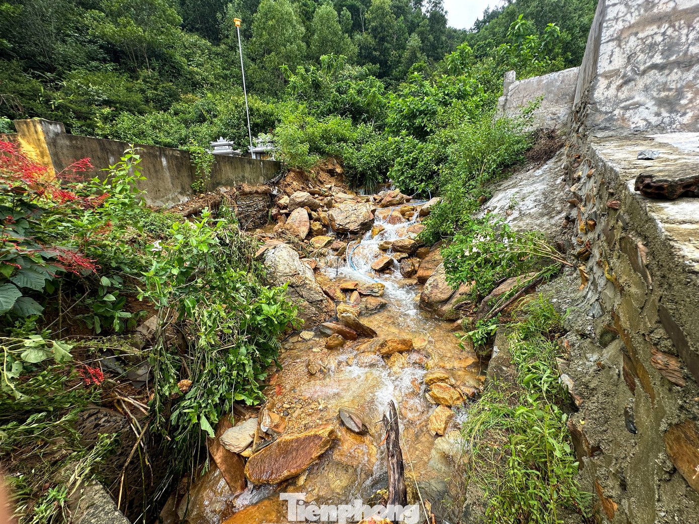 Tại một số vị trí, nước từ sườn núi chảy xiết, khoét sâu vào lớp đất đá, tạo thành rãnh lớn. Nếu mưa lớn tiếp tục kéo dài, nguy cơ sạt lở tại khu vực này là rất cao.