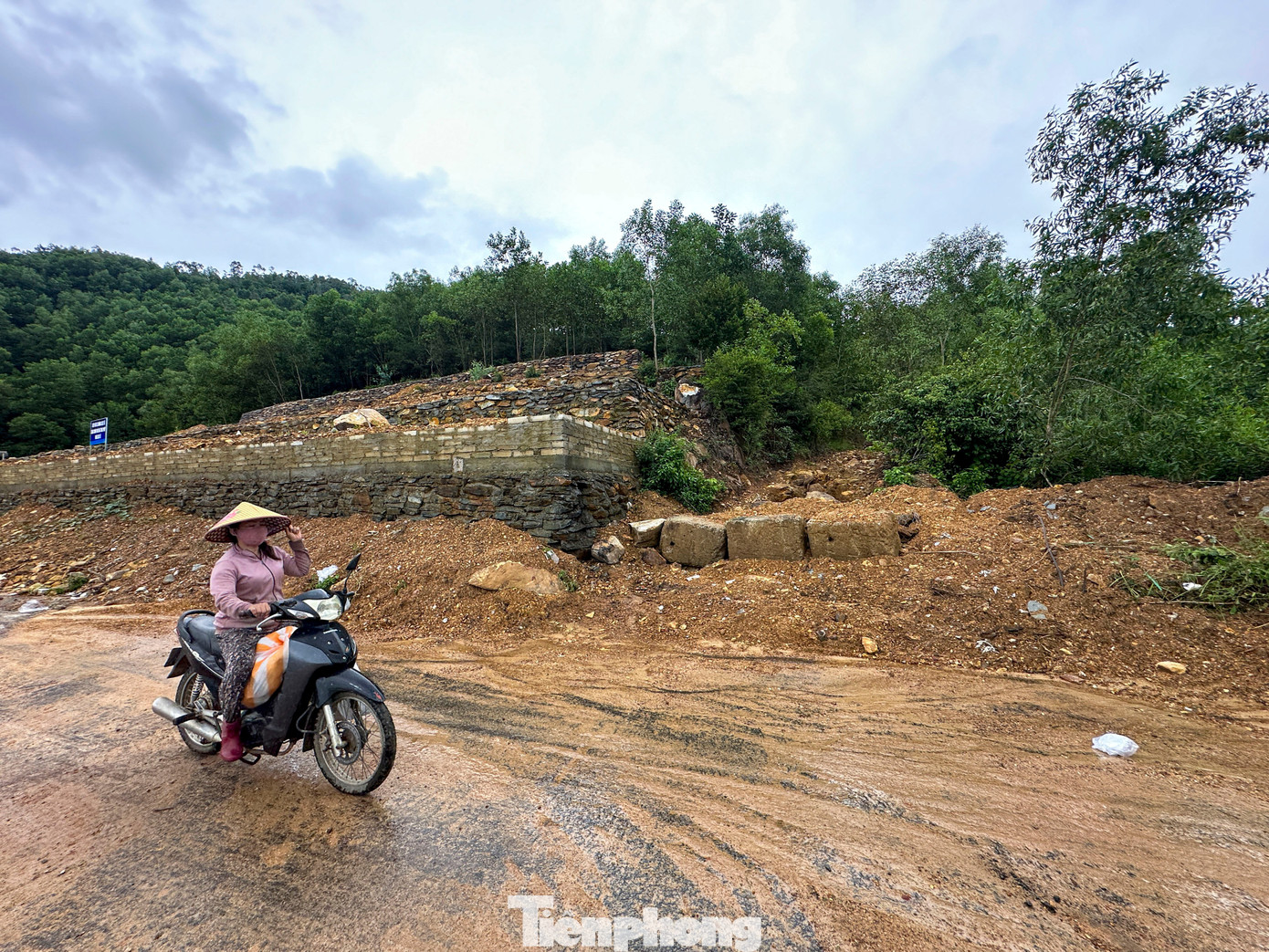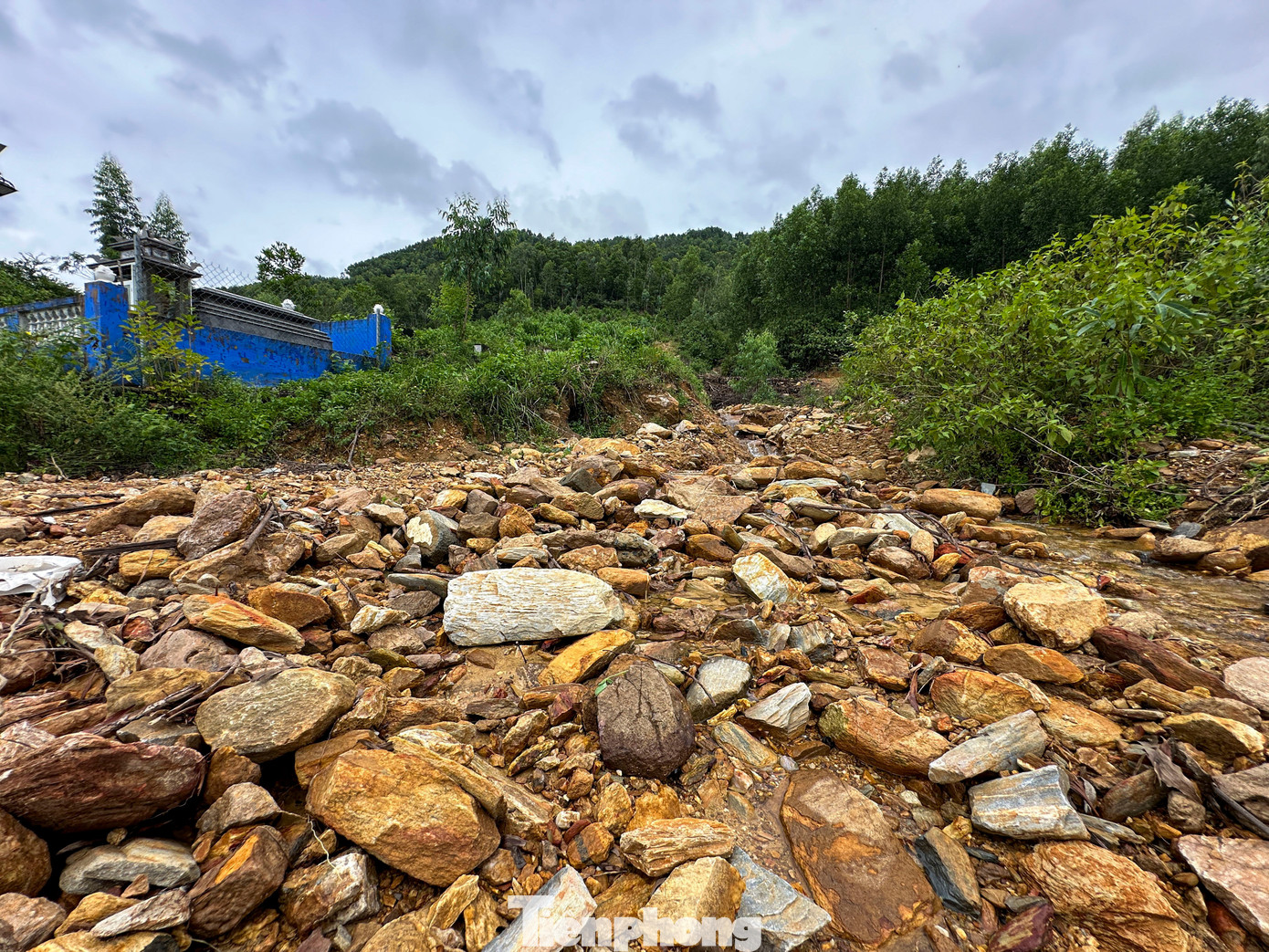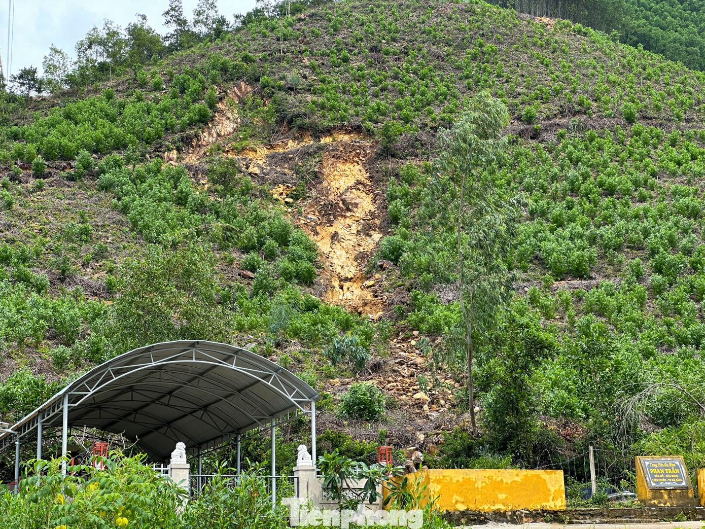 Tại một số vị trí, nước từ sườn núi chảy xiết, khoét sâu vào lớp đất đá, tạo thành rãnh lớn. Nếu mưa lớn tiếp tục kéo dài, nguy cơ sạt lở tại khu vực này là rất cao.