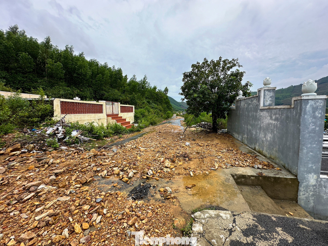 Theo người dân địa phương, những trận mưa lớn vừa qua khiến đất đá từ trên đồi cao tràn xuống, nhiều đoạn đường trong khu vực bị phủ lấp, thậm chí có nơi sạt lở nghiêm trọng, mặt đường nứt toác.