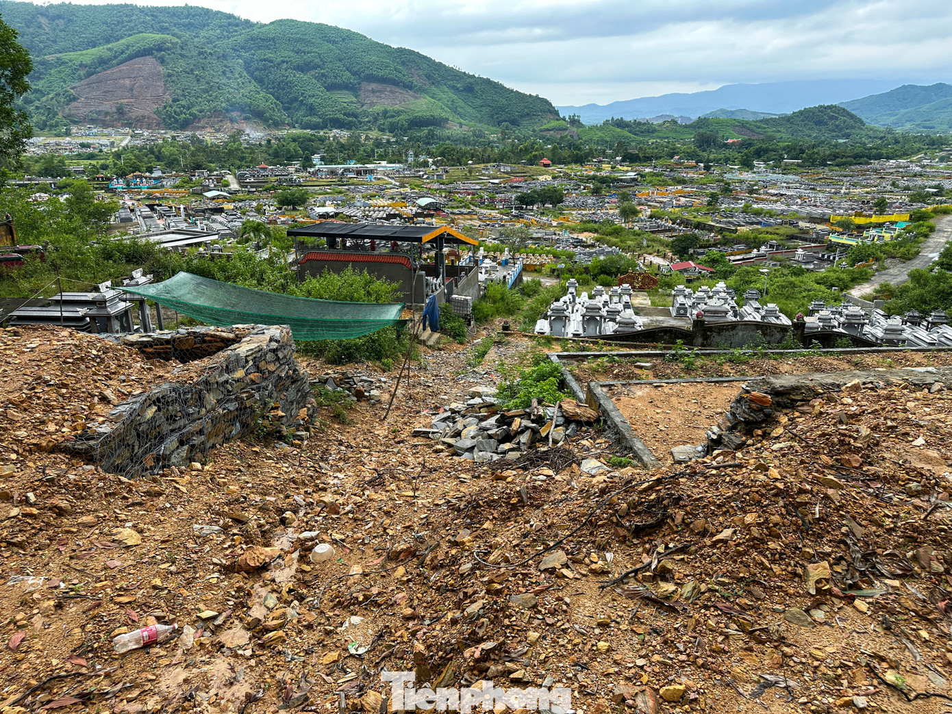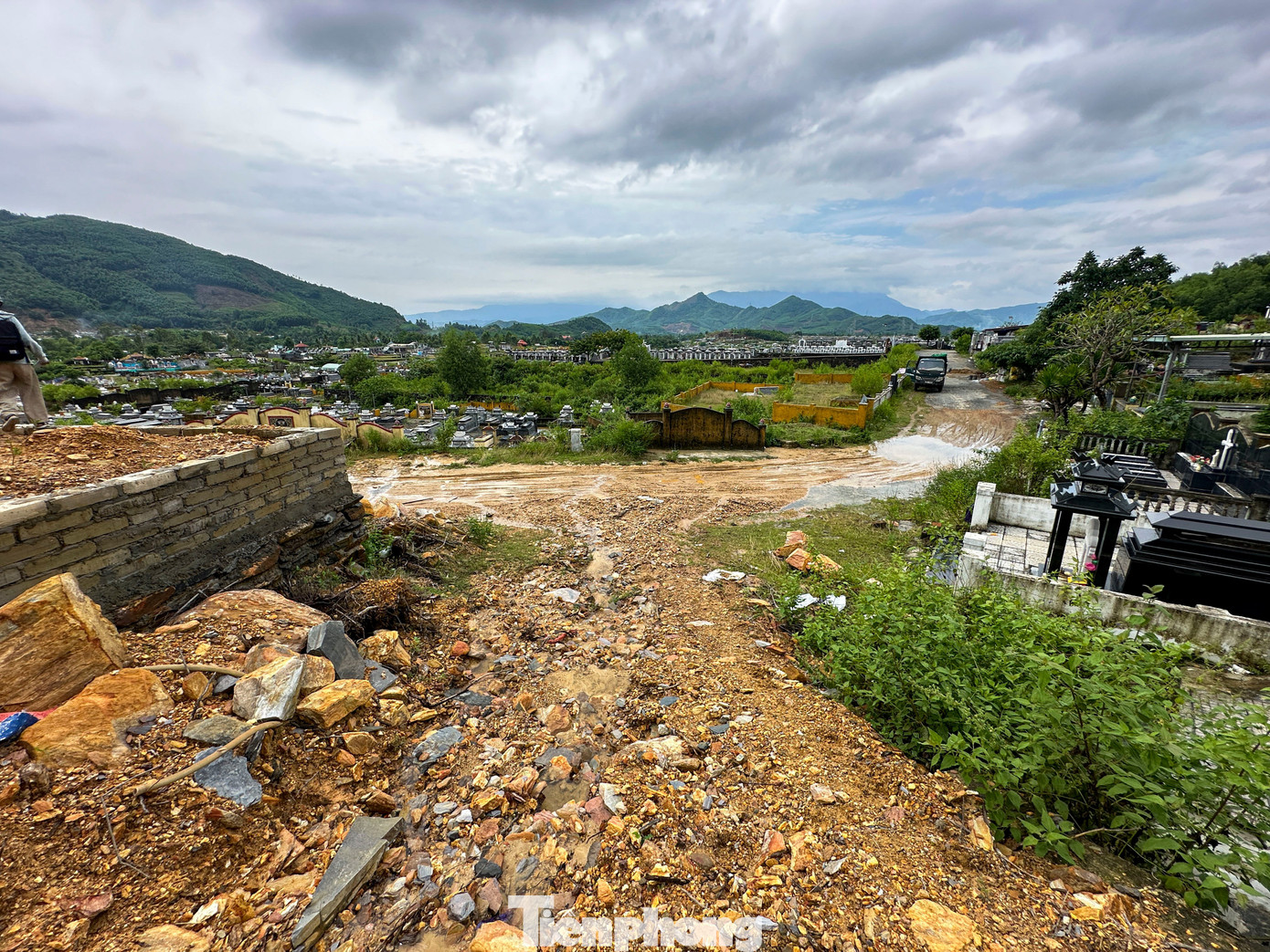 Trước đó, trong trận mưa ngập lịch sử ngày 14/10/2022, khu nghĩa trang này từng xảy ra sạt lở nghiêm trọng, ảnh hưởng trên 2,2ha. Hàng trăm khối đất đá tràn xuống, vùi lấp và làm hư hỏng hơn 600 ngôi mộ.