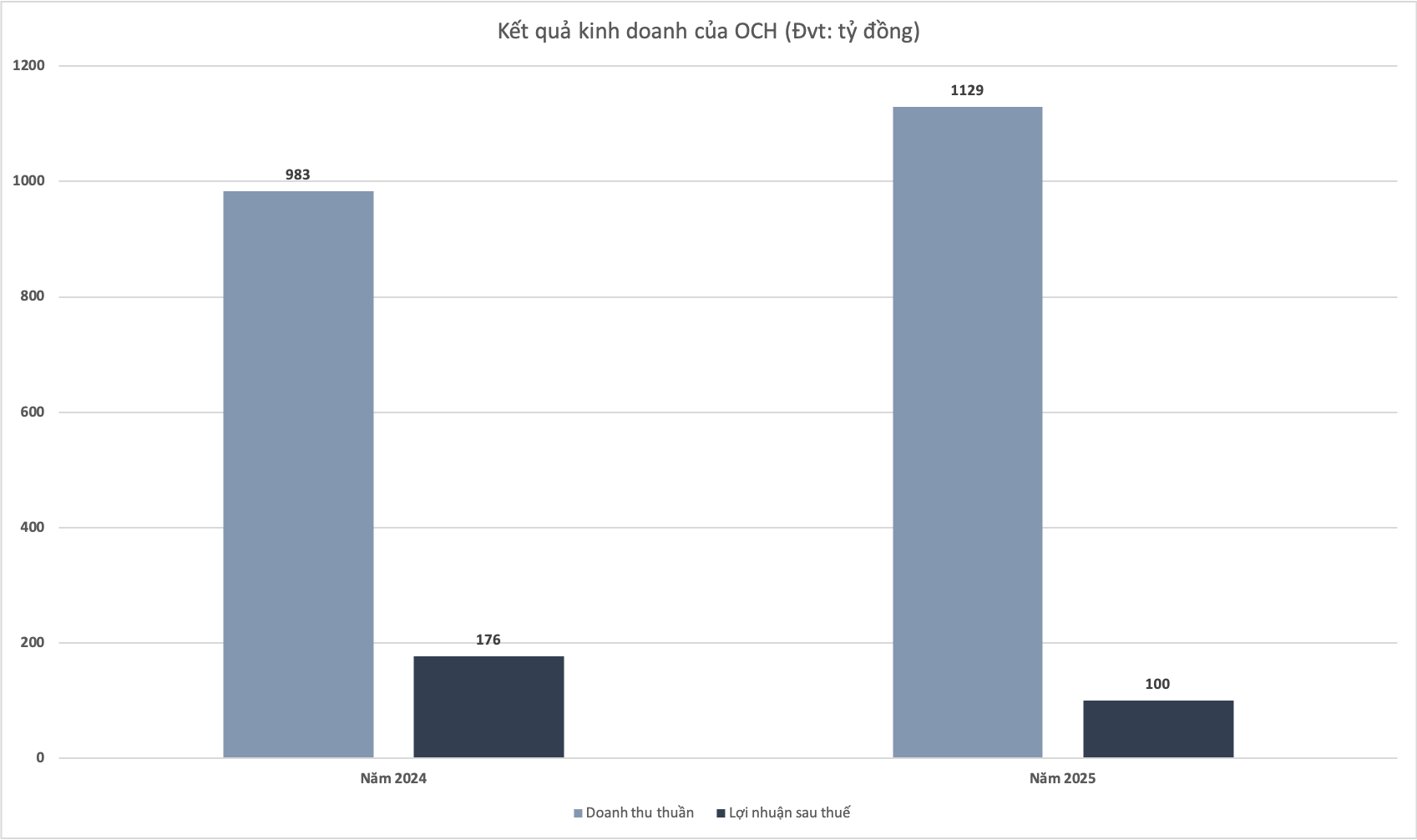 Tuy nhiên, sự khởi sắc ở phần "ngọn" không đủ để cứu vãn bức tranh lợi nhuận sau cùng. Quý IV/2025, OCH bất ngờ ghi nhận mức lỗ ròng 14,9 tỷ đồng, một sự đảo chiều đau đớn so với khoản lãi 41 tỷ đồng của cùng kỳ năm ngoái.