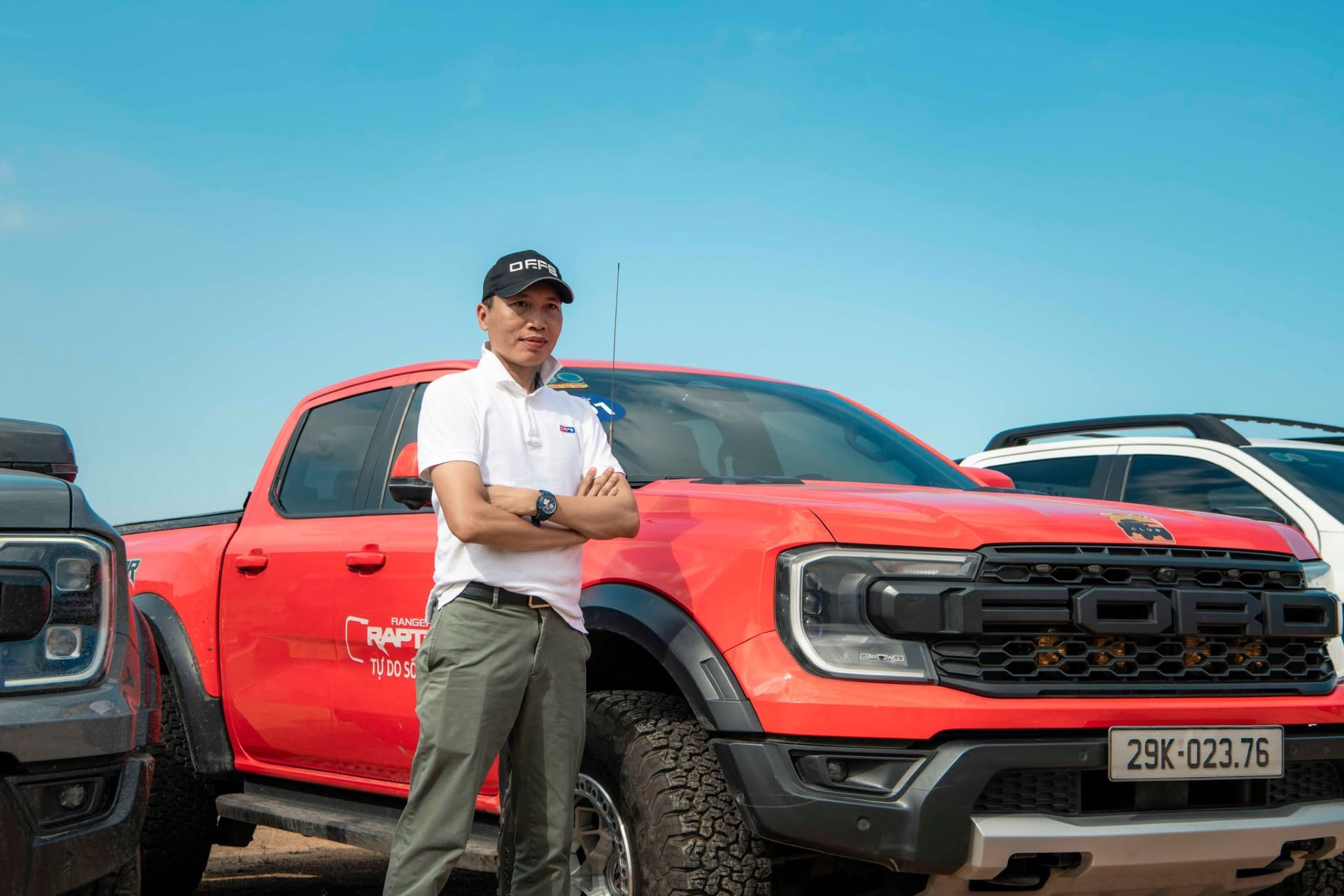 Anh Nguyễn Quốc Bình - Quản trị viên của diễn đàn OF.FB bên cạnh chiếc Ford Ranger Raptor. Ảnh: NVCC