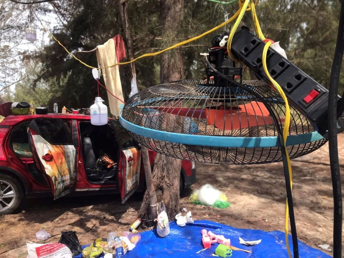 Chiếc VF 5 được anh Tùng biến thành “trạm cấp điện lưu động” trong một chuyến dã ngoại. (Ảnh: FBNV)