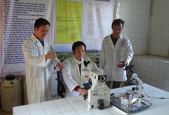 Các nhà khoa học Trung tâm Nghiên cứu và Phát triển Chăn nuôi miền Núi (Viện Chăn nuôi) đánh giá chất lượng tinh dịch ở trâu, ngựa.