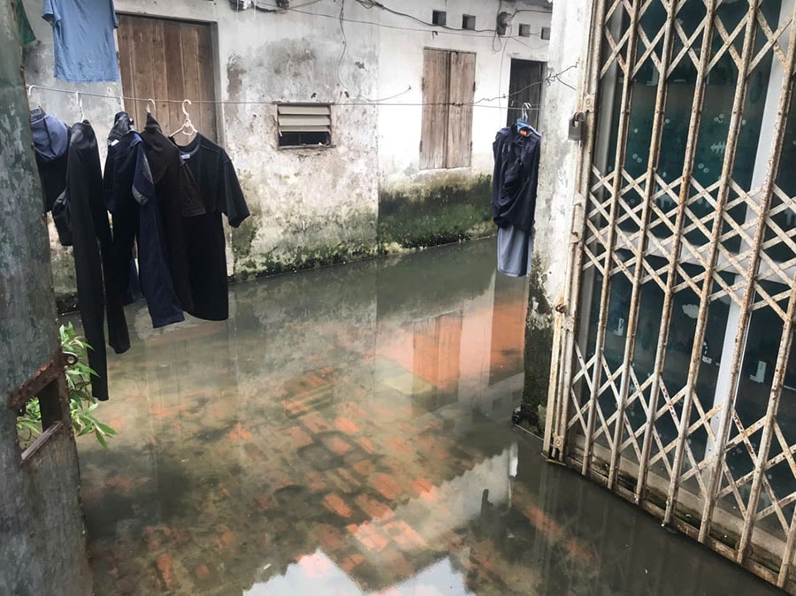 Sau mỗi trận mưa là nước ngập khắp ngõ và từng nhà dân tại ngõ 85, đường Võ Chí Công (phường Nghĩa Đô).