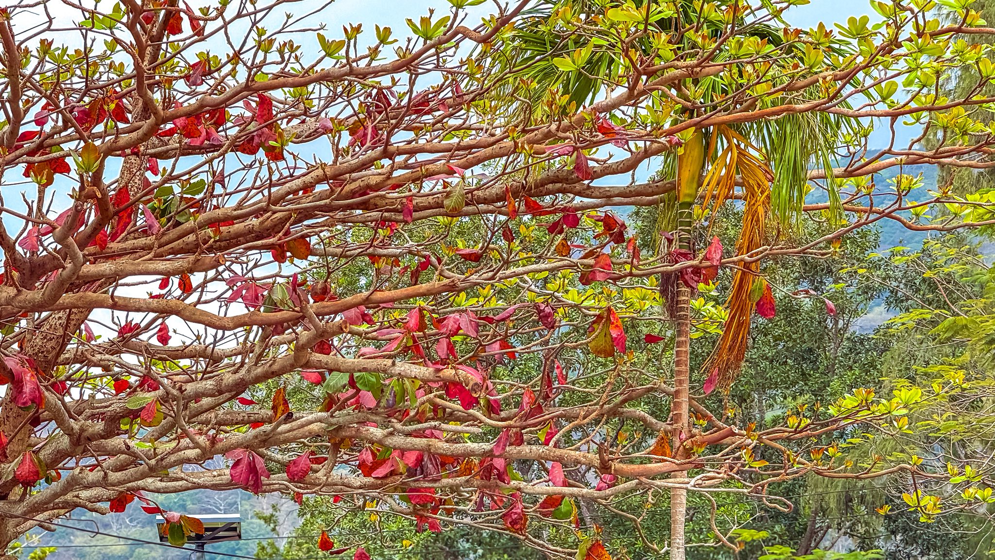 Những dãy bàng chuẩn bị thay lá tạo nên sắc màu đặc biệt, khiến Côn Đảo trở nên quyến rũ hơn. Ảnh: PHONG CÔN ĐẢO