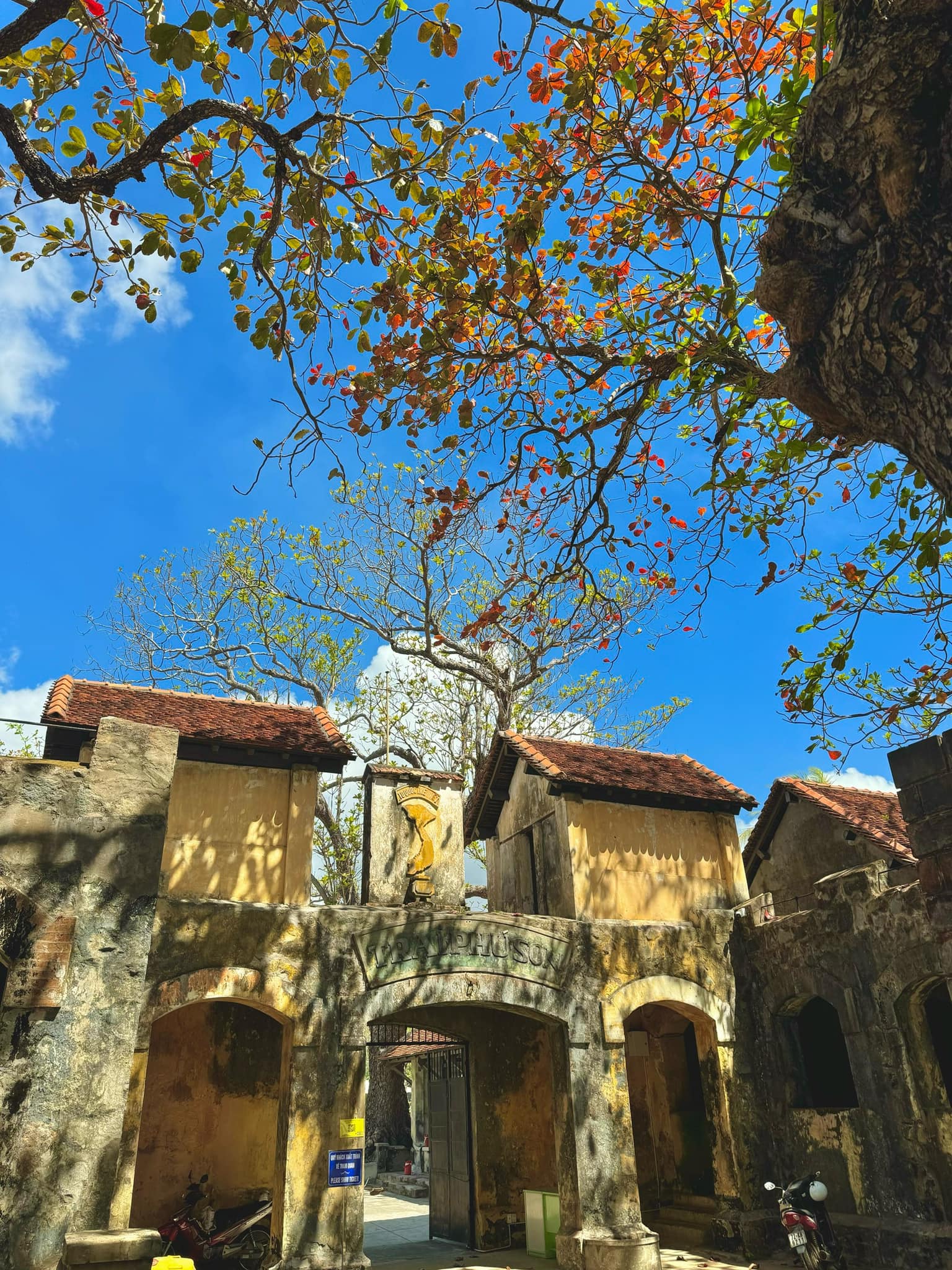 Cây bàng trước di tích trại tù Phú Sơn cũng thay áo mới. Ảnh: PHONG CÔN ĐẢO