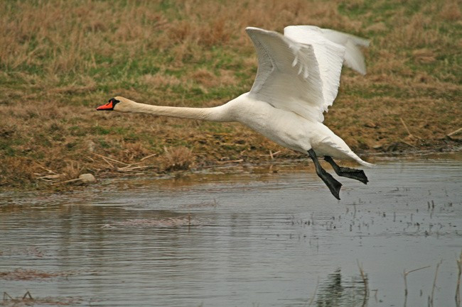 Đặc điểm nổi bật của thiên nga trắng là bộ lông hoàn toàn trắng muốt, mềm và mượt. Mỏ có cam tươi, viền đen ở gốc mỏ và có một bướu sừng nổi bật. Chân của con trống có màu đen trong khi con cái có chân màu xám nhạt hoặc vàng nhạt. Ảnh: Laura Mae.