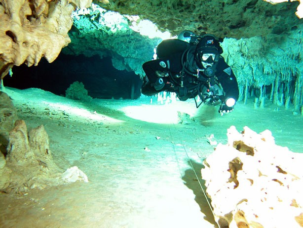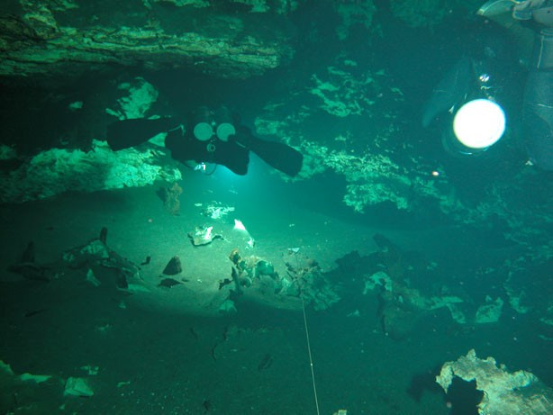 Trước đó, trong một nghiên cứu năm 2020, bán đảo Yucatan là nơi có nhiều hệ thống hang động khổng lồ vì nơi đây có lớp đất mặt mỏng phủ đá vôi, có khả năng hòa tan, cho phép nước mưa nhanh chóng thấm vào các hang động bên dưới mặt đất Đây cũng là lý do tại sao khu vực này có rất ít sông hoặc suối. Ảnh: D. Riordan/gue.com.