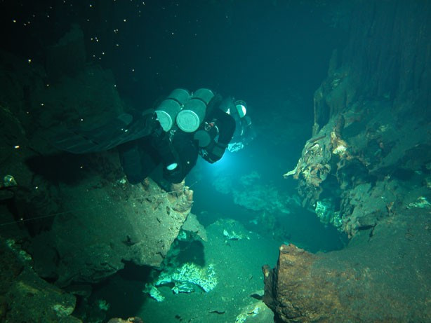 Hệ thống hang động dưới nước lớn nhất thế giới Ox Bel Ha là nơi sinh sống của nhiều sinh vật. Năm 2018, các nhà khoa học phát hiện Ox Bel Ha hỗ trợ hệ sinh thái của nó bằng khí Methane. Ảnh: D. Riordan/gue.com.