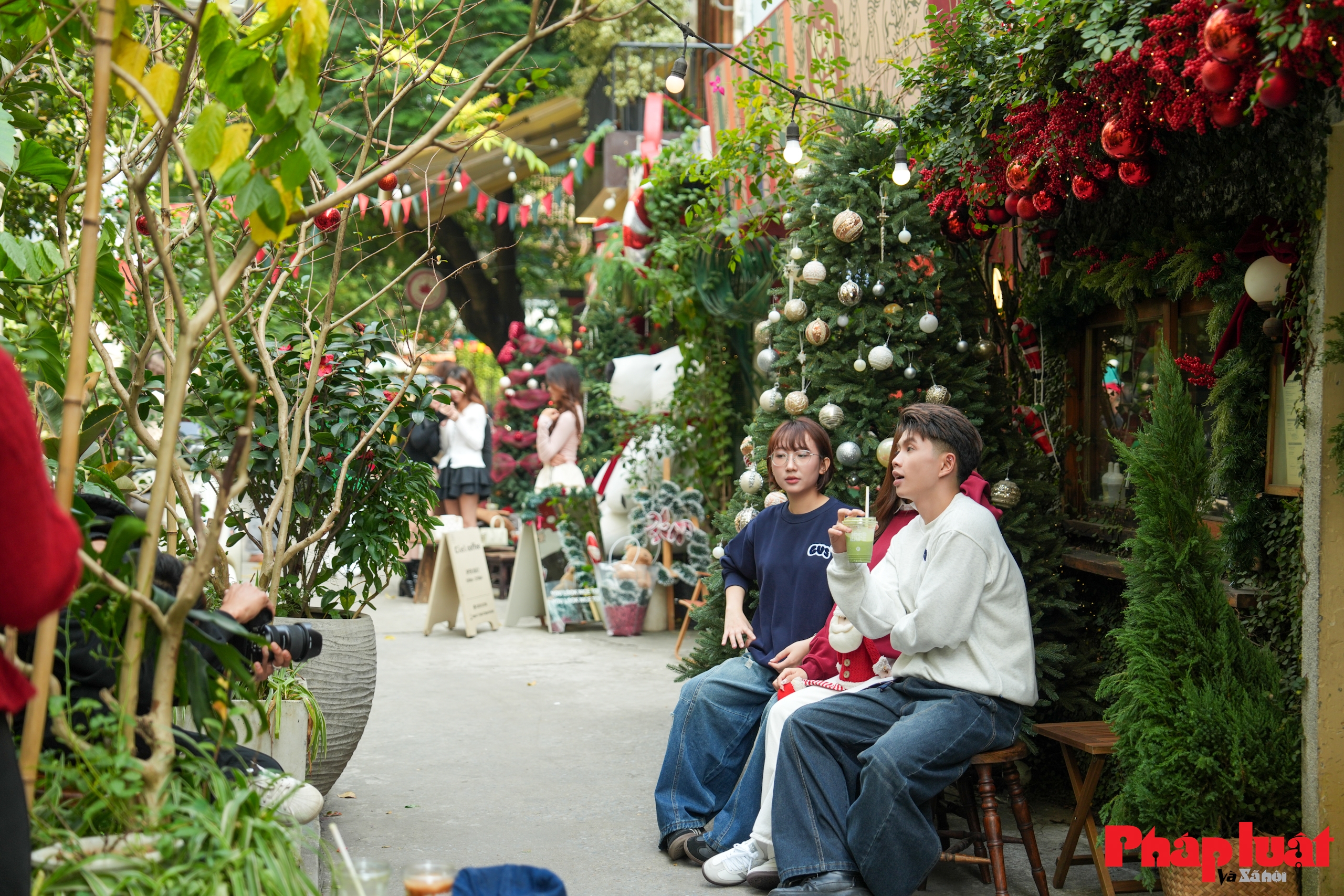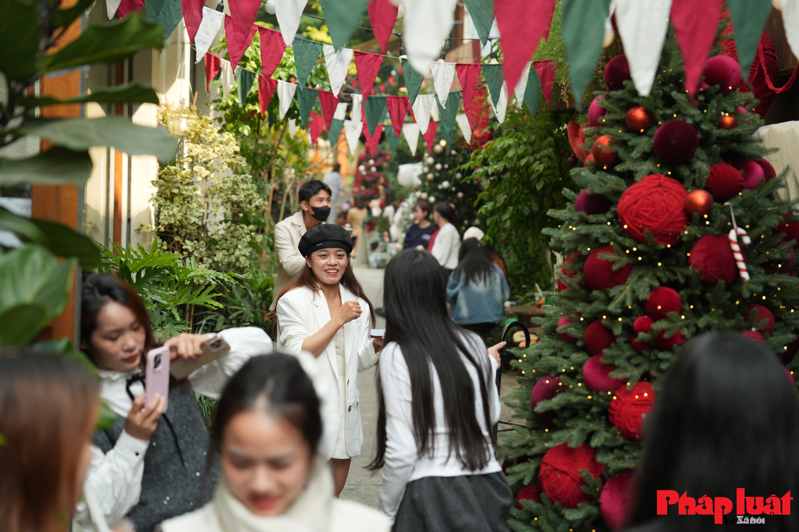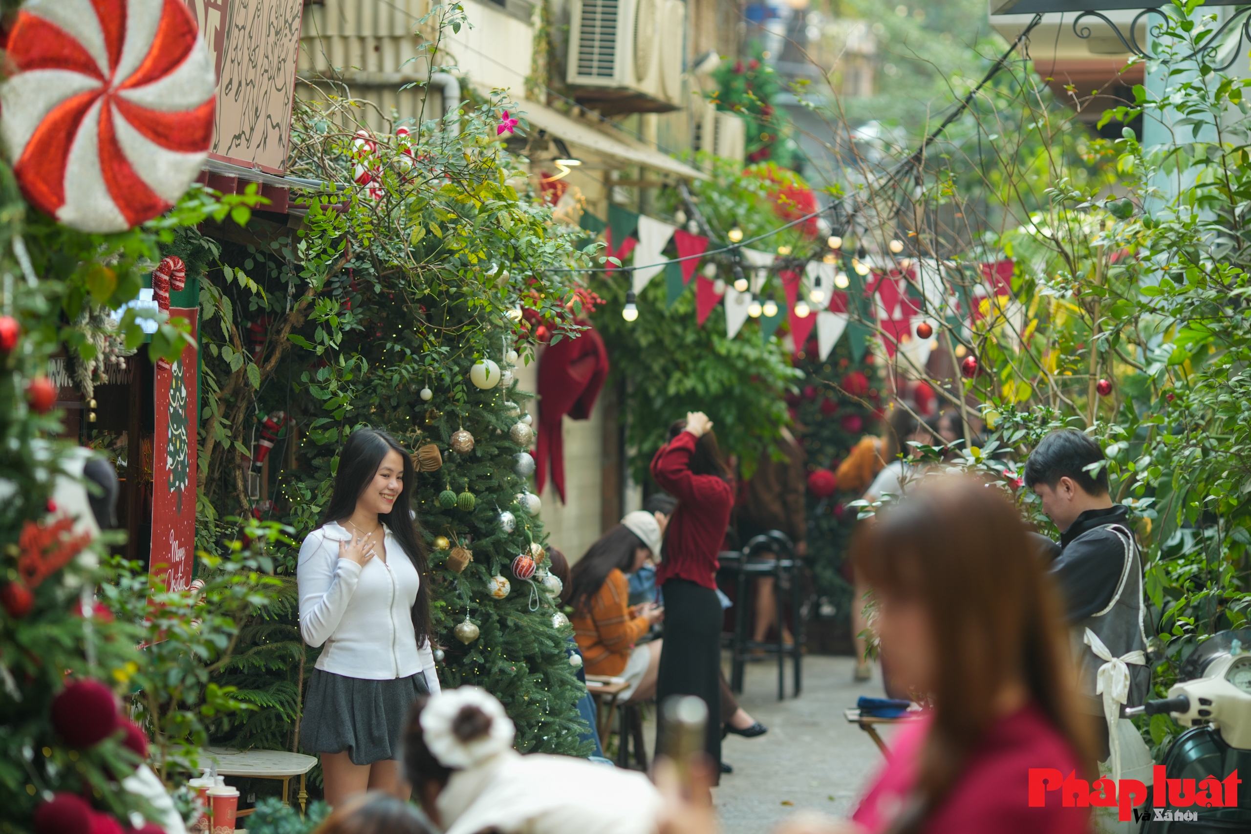 Con ngõ dài khoảng 100m tại khu D6 Trung Tự, nơi vốn tập trung nhiều quán cà phê, cửa hàng thời trang và đồ ăn đã được trang trí rực rỡ mùa Giáng sinh, trở thành điểm check-in thu hút đông đảo bạn trẻ.