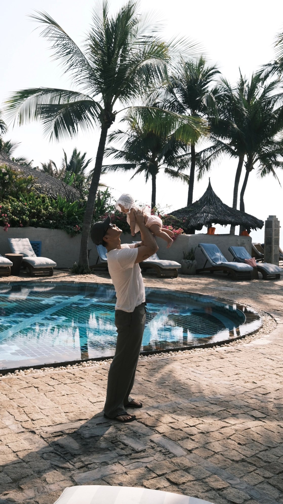 Huy Trần chia sẻ những hình ảnh đi biển cùng bà xã Ngô Thanh Vân và bé Gạo - con gái gần 6 tháng tuổi. "Bên hai cục cưng này, trái tim lại rung động như lần đầu yêu. Tôi quá may mắn", anh viết trên trang cá nhân. Đây là lần hiếm hoi hai vợ chồng đăng ảnh để lộ phần lớn gương mặt bé Gạo. Trước đây, cặp đôi chỉ hé lộ một phần gương mặt con gái.