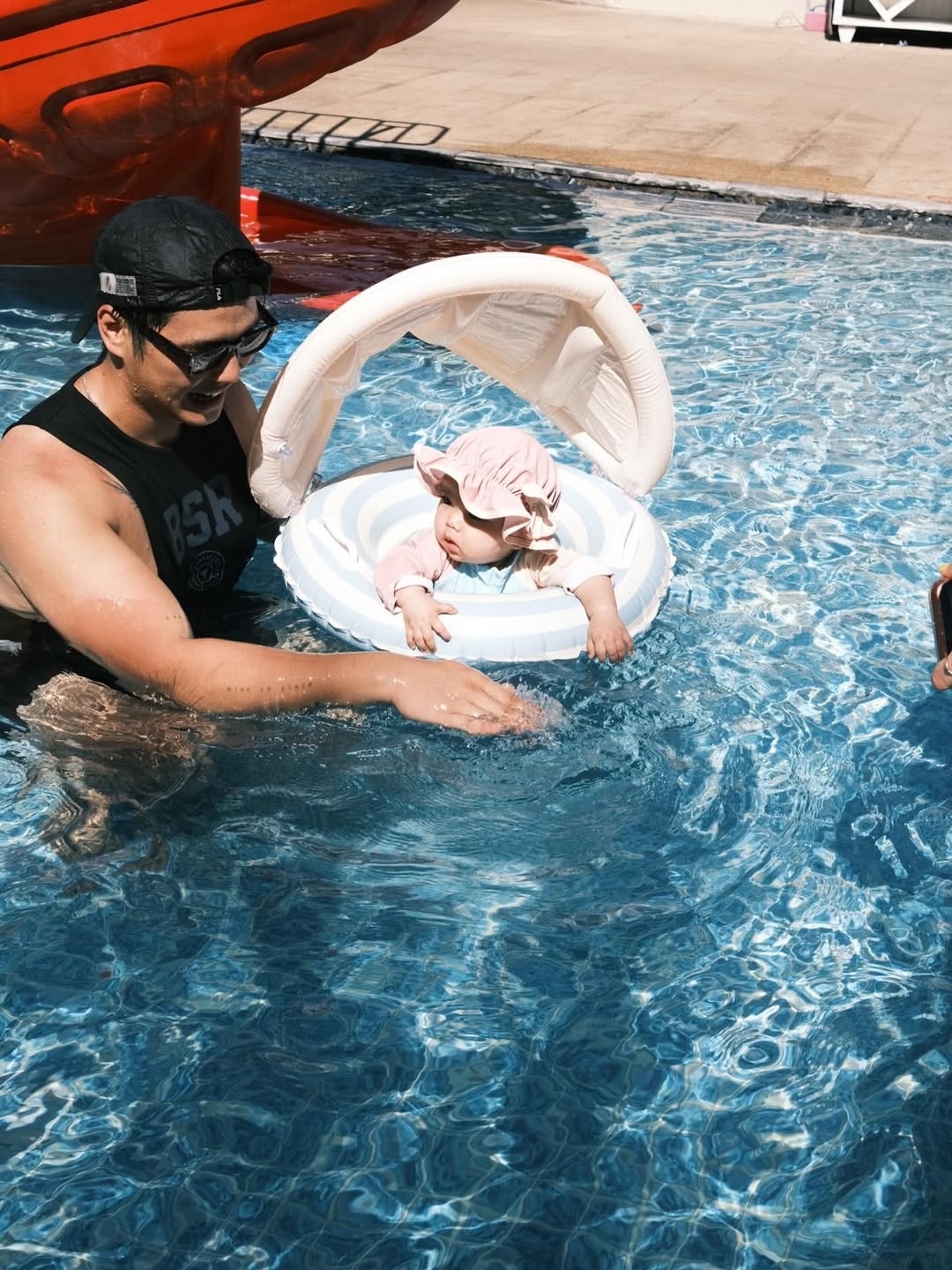 Trong chuyến nghỉ dưỡng tại resort cao cấp, bé được bố mẹ đưa đi bơi, dạo chơi trên bãi biển và tham quan vườn thú. Ngô Thanh Vân nhận xét dù thời tiết nắng nóng nhưng cả gia đình đã có những giây phút thư giãn ý nghĩa bên nhau.