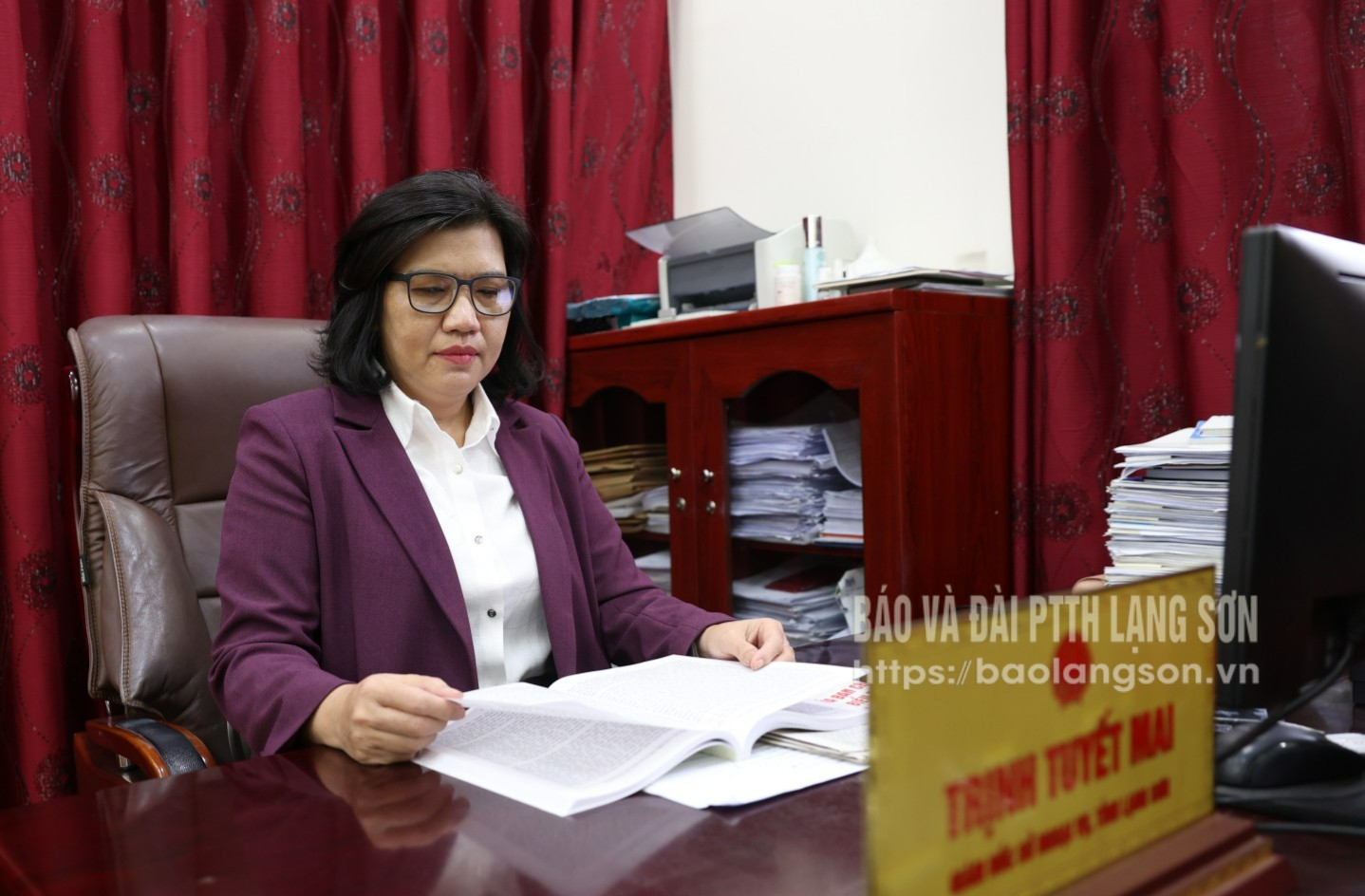 Bà Trịnh Tuyết Mai, Bí thư Chi bộ, Giám đốc Sở Ngoại vụ nghiên cứu dự thảo Báo cáo chính trị trình Đại hội XIV của Đảng