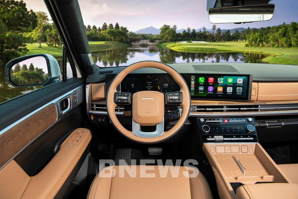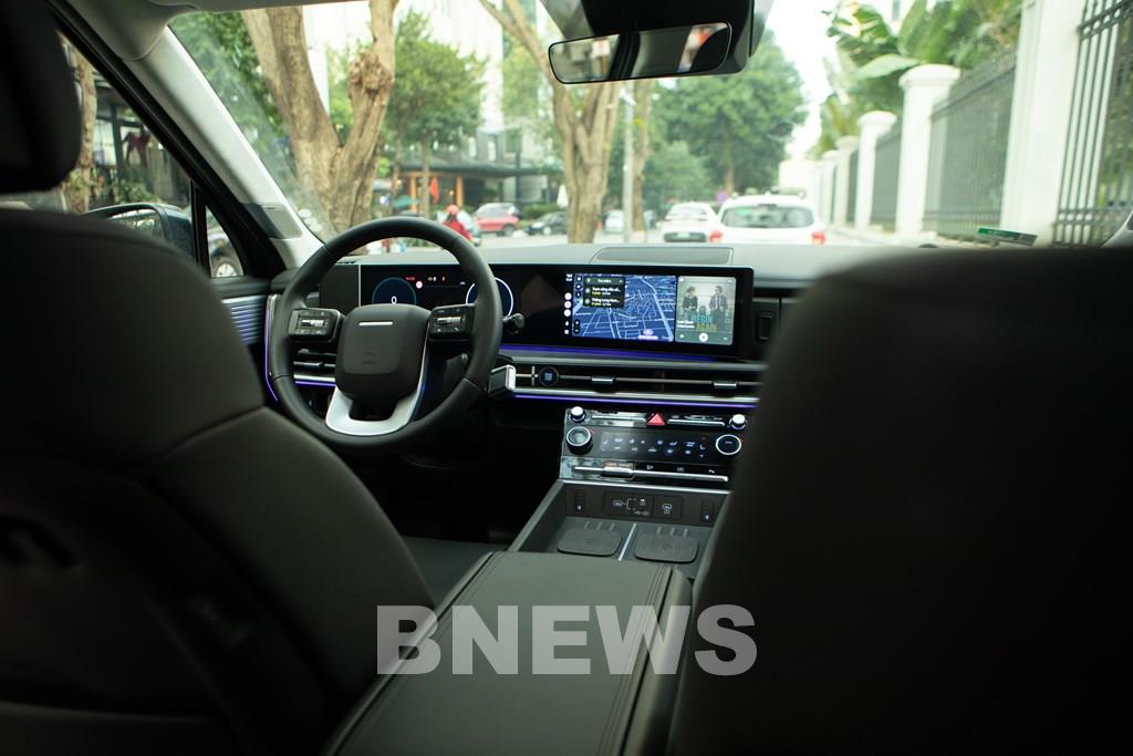 Xe cung cấp cả cấu hình 6 chỗ với ghế Captain Seat hoặc 7 chỗ truyền thống, đáp ứng các nhu cầu sử dụng khác nhau. Khoang lái được trang bị màn hình cong 12,3 inch liền mạch hướng về phía người lái, hỗ trợ Apple CarPlay và Android Auto. Việc chuyển cần số lên cột vô lăng giúp giải phóng không gian khu vực bệ tỳ tay trung tâm. Tại đây, người dùng có hai khay sạc không dây, khay để cốc/chai nước và hộc chứa đồ với nắp mở hai chiều, thuận tiện trong quá trình sử dụng.