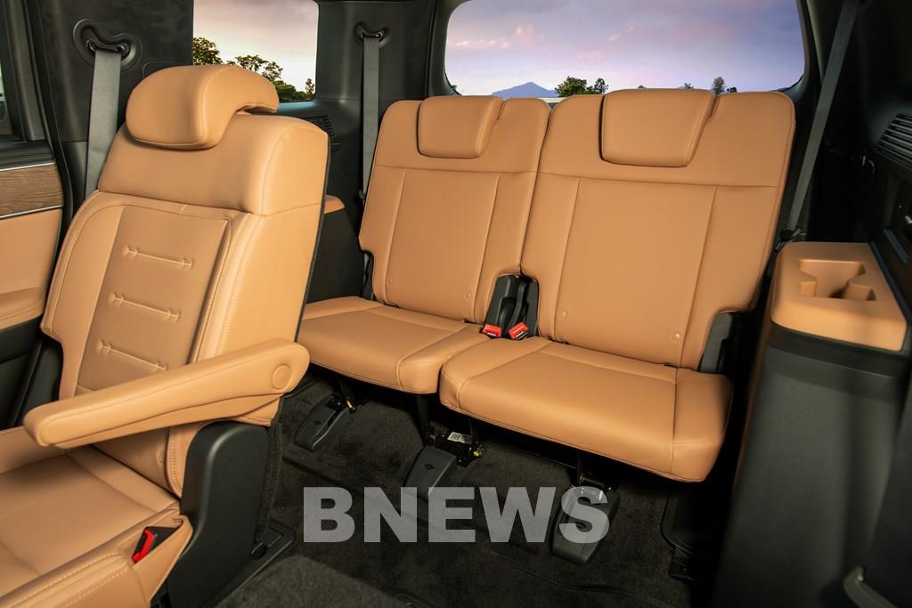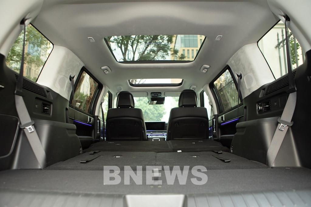 Khi cần mở rộng không gian chứa đồ, hàng ghế thứ hai và thứ ba có thể gập phẳng. Nút bấm điều khiển gập ghế được bố trí sẵn ở khoang hành lý, giúp thao tác nhanh và dễ dàng hơn.