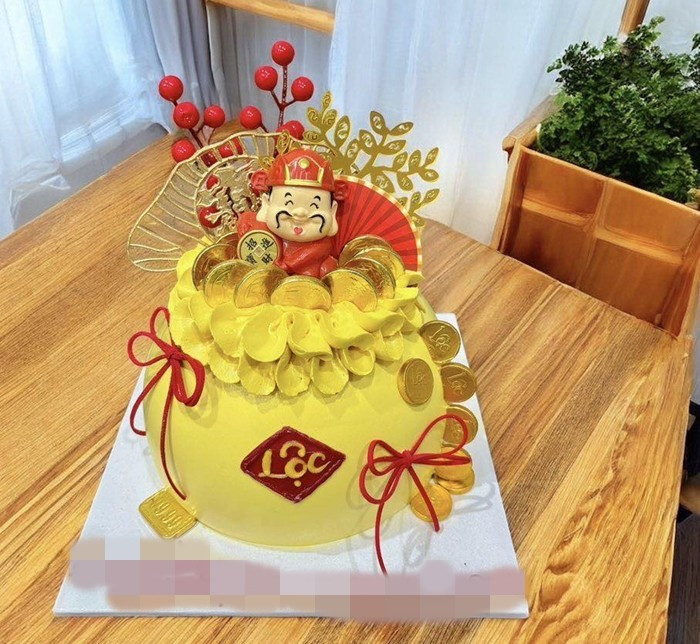 Từ sau Tết Nguyên đán, nhiều người tiêu dùng tìm đặt bánh kem tạo hình hũ vàng, túi tiền để cúng ngày vía Thần Tài mùng 10 tháng Giêng âm lịch. Ảnh: FB Tống Thị Thanh Nhàn