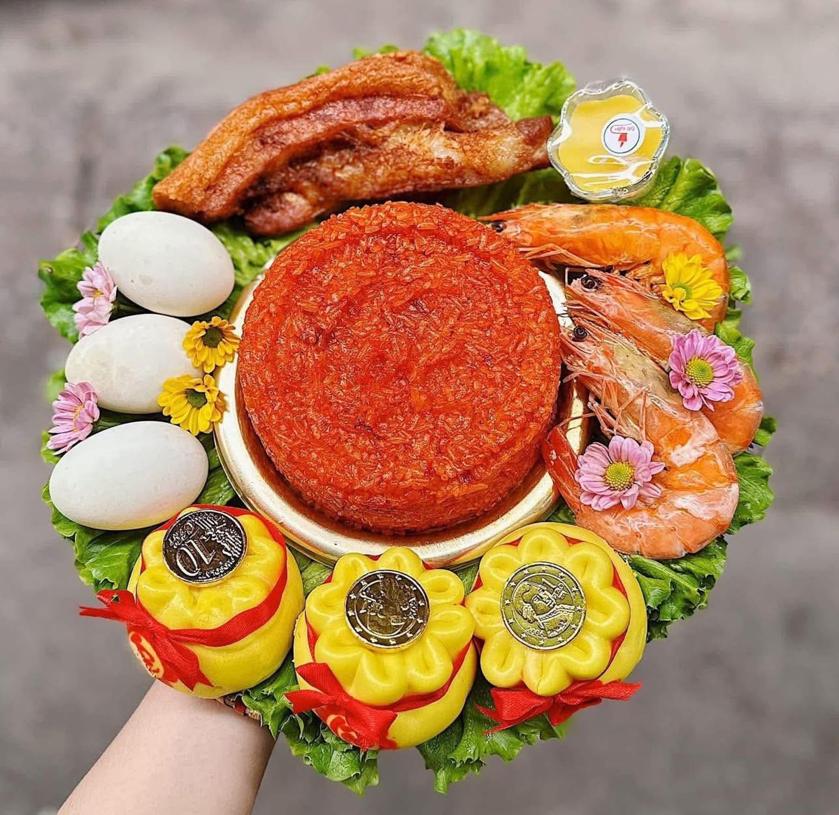 Không chỉ các loại bánh tạo hình tài lộc, mâm tam sên với đầy đủ lễ vật truyền thống như thịt, trứng, tôm, cua... cũng hút khách trong ngày vía Thần Tài. Ảnh: FB Thu Uyên Nguyễn